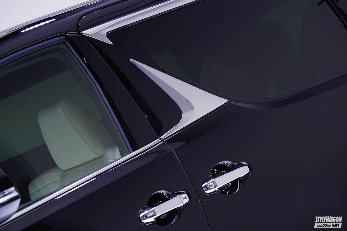 サイドステップの交換は、プロショップのスタッフにかかればあっという間。基本的には純正との付け替えで、メッキガーニッシュ付きのレクサスLM 仕様になる。今回、時間の都合で作業しなかったが、ウインドウ下へ設置する専用のメッキガーニッシュも、ほぼ問題なく装着できそうだ。