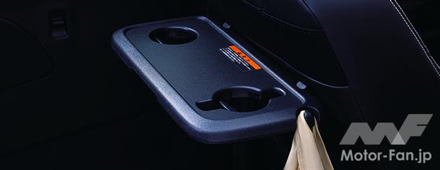 加えてスペーシア ギアは後席両側にパーソナルテーブルが装備されるが、デリカミニではT PremiumおよびG Premiumのみ助手席シートバックテーブルが装備される。