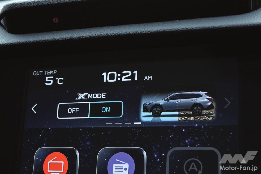 いざというときにはタイヤの空転を抑える「X-MODE」や一定速度で走行できる「グリップコントロール」といった快適にオフロードを走るためのデバイスが頼りになる。堂々たるサイズに高いクオリティと安全性を誇る、いかにもスバルのフラッグシップらしい1台である。