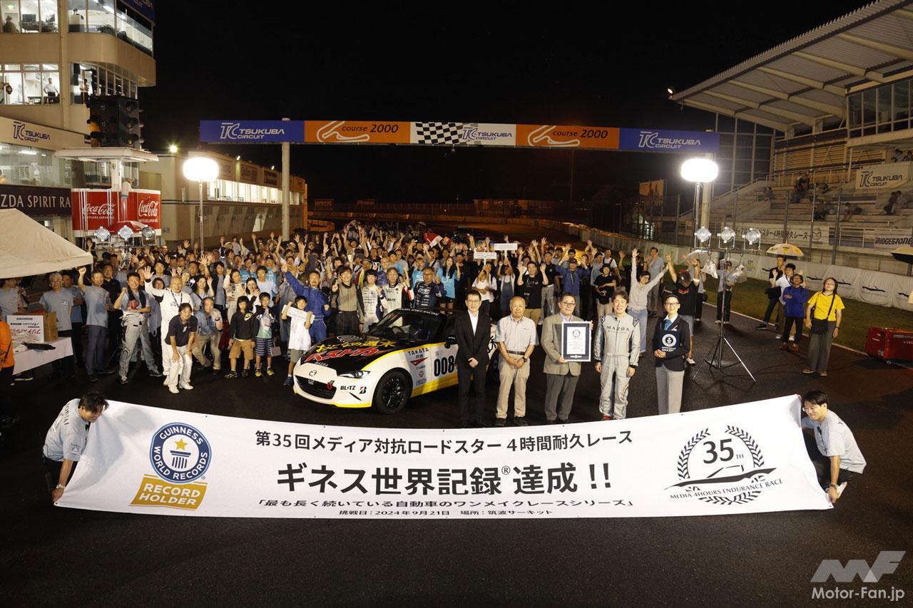 「1989年に生まれたロードスターは、ライトウェイトスポーツカーというジャンルを復活させ、絶やすことなく35年間歴史を刻み、確固たる地位を築きました。このメディア4耐もその歴史と並走する形で、のべ820台のロードスターが熱いバトルを繰り広げました。この世界に誇るレースがギネス世界記録に認定されたことは大変喜ばしいこと。これまで関わった皆様全員でお祝いし、また記録を更新していきましょう」