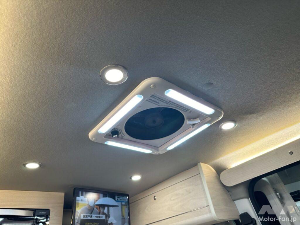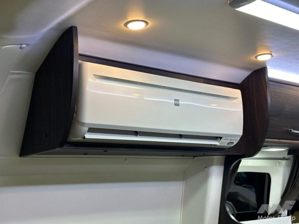 こういう状況を鑑みて、市場でスタンダードとなっているのがエンジン停止時の冷房設備だ。キャンピングカー用の冷房にはいくつかタイプがある。キャブコンやトレーラーで一般的なのが、家庭用100Vエアコンの装備だ。家に付いているものと同じで、室外機の設置や配管が必要になる。最近はバンコンでも採用されているモデルがある。