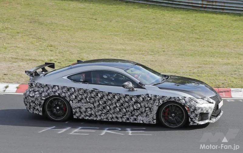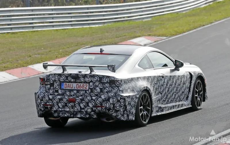 掲載しているスパイショットは、以前、ニュルで捉えたレクサス RC F GTと見られる開発車両だ。ボンネットやルーフにカーボンファイバーを使用、コーナーエアインテークが大型化され、スピンドルグリルの下部にも新たな吸気口、ボンネットにもエアスクープを装備しているが、実施的な後継モデルへの準備段階における、テストミュールだった可能性もでてきた。