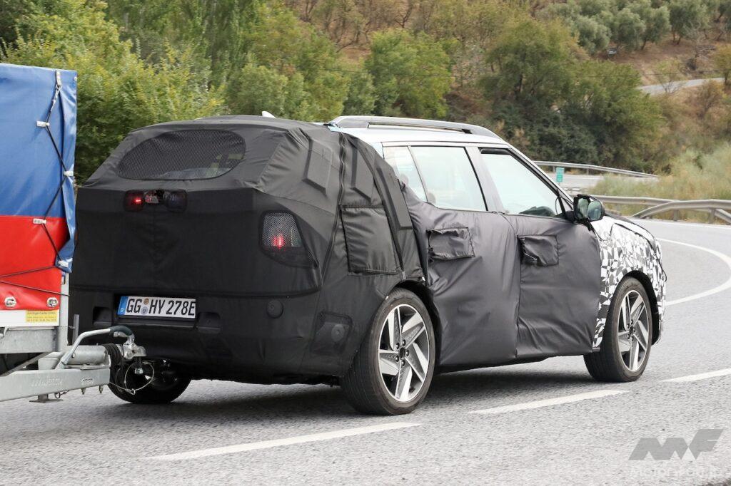 後部は大掛かりなカモフラージュが施されており、最終的な形状は不明だが、テールがやや直立しており、SUVとしての実用性が向上しているようだ。ボクシーなボディスタイルは、Bピラーから前方にかけて新型サンタフェを彷彿させるが、ネッソはホイールベースが短く、リヤドアの後ろのウエストラインが特徴的であるため、この2台は簡単に区別がつく。