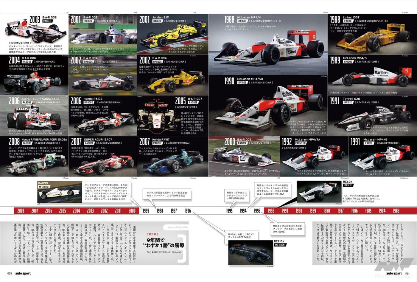 『HONDA F1 頂点と原点』と題された特集では、四輪メーカーとして駆け出しだったホンダがいかにF1に挑戦し、頂点を目指したか、複数回の撤退を含んだ紆余曲折のつまったホンダF1の歴史を掘り下げている。