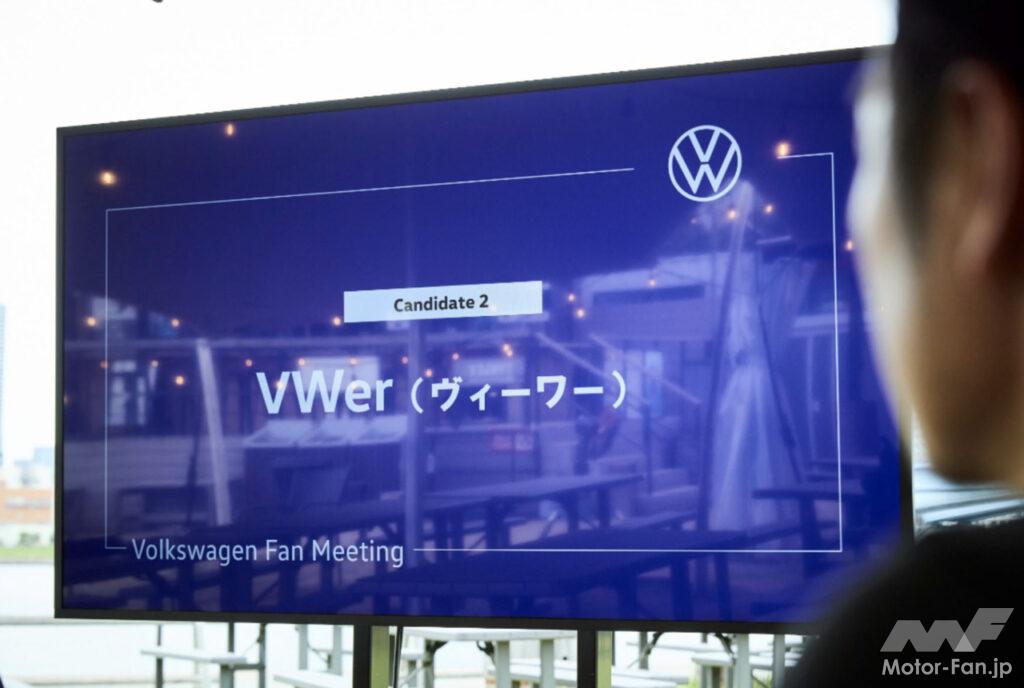 この日は、Volkswagen Fan Meetingの初開催を記念して、フォルクスワーゲンファンの愛称を決定。事前に参加者から寄せられた案をもとに、最終的に3つに絞られた候補のなかから、参加者の多数決で「VWer(ヴィーワー)」が選ばれた。