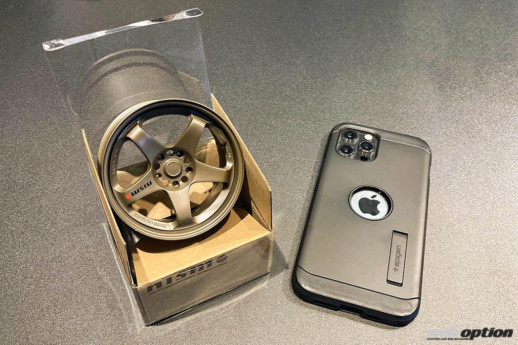 数あるセール対象商品の中で、WEB OPTIONが注目したのは『ニスモLM GT4』のミニチュアだ。9.0Jプラス22×18インチの実物を3Dスキャニングし、アルミ製リムにレジン製スポークを組み合わせた独自の2ピース製法を採用。精巧さはもはや異常レベルなのだが、このアイテムには本物と同じデザインの箱まで付属するというのだから恐れ入る。