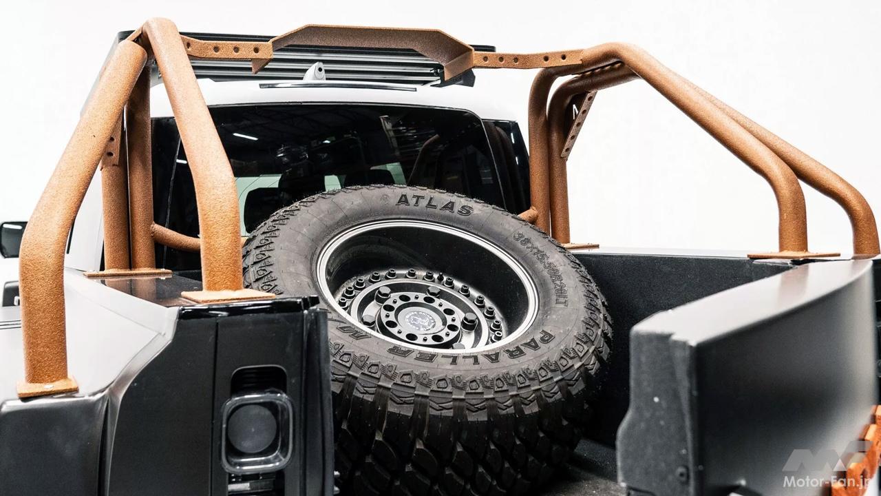 その他の変更では、新しいフレアフェンダー、スキッドプレート、サイドステップ、ロックスライダー、そしてフロントの明るいオレンジ色のバルブバーが装備されている。また、ルーフラックの横にLEDスポットライトが取り付けられ、リアにはスポーツバーとフルサイズのスペアホイールとタイヤがベッドに装備されている。