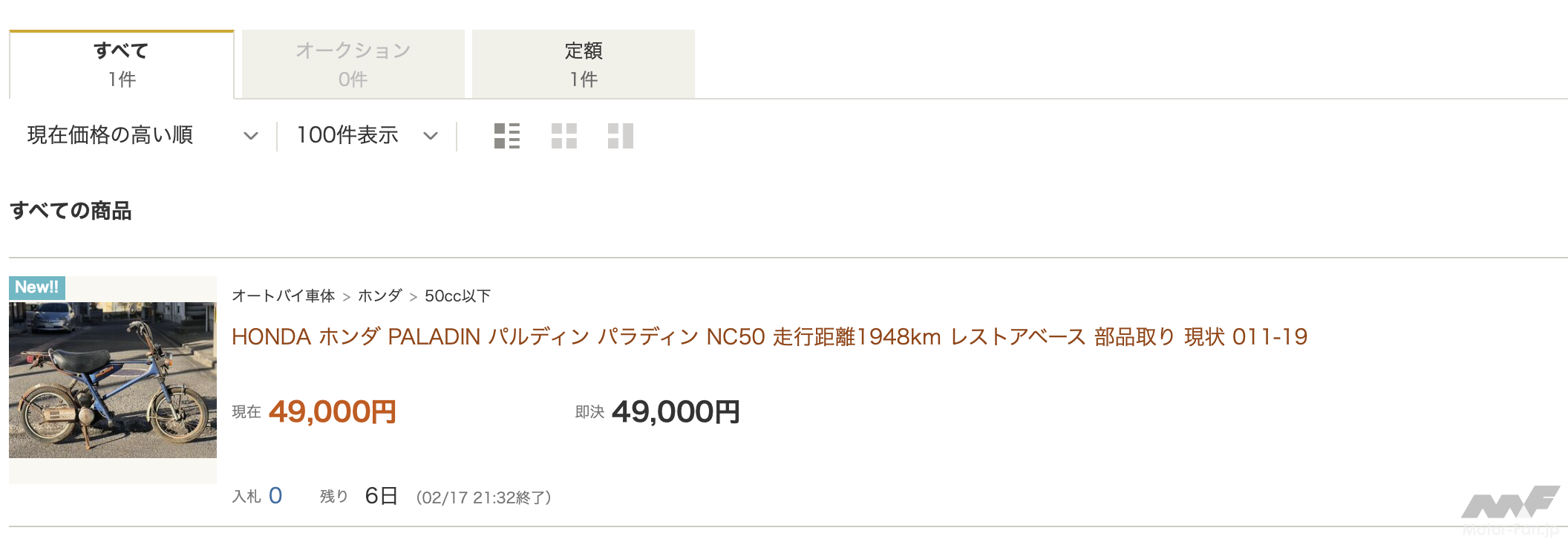 ロードパル4兄弟の中で最もレアなのがパルディンのようだ。グーバイクに販売車両は見当たらず、ヤフオク!でも1台だけという状況。サビが多いレストアベースとはいえ5万円を切っているから、お買い得感があると言えるだろうか。いずれもロードパルなら選べるくらいの台数が見つかるが、ほかの兄弟車については完全に希少車と言っていいだろう。これはもしや、これからブームが来るかもしれない!