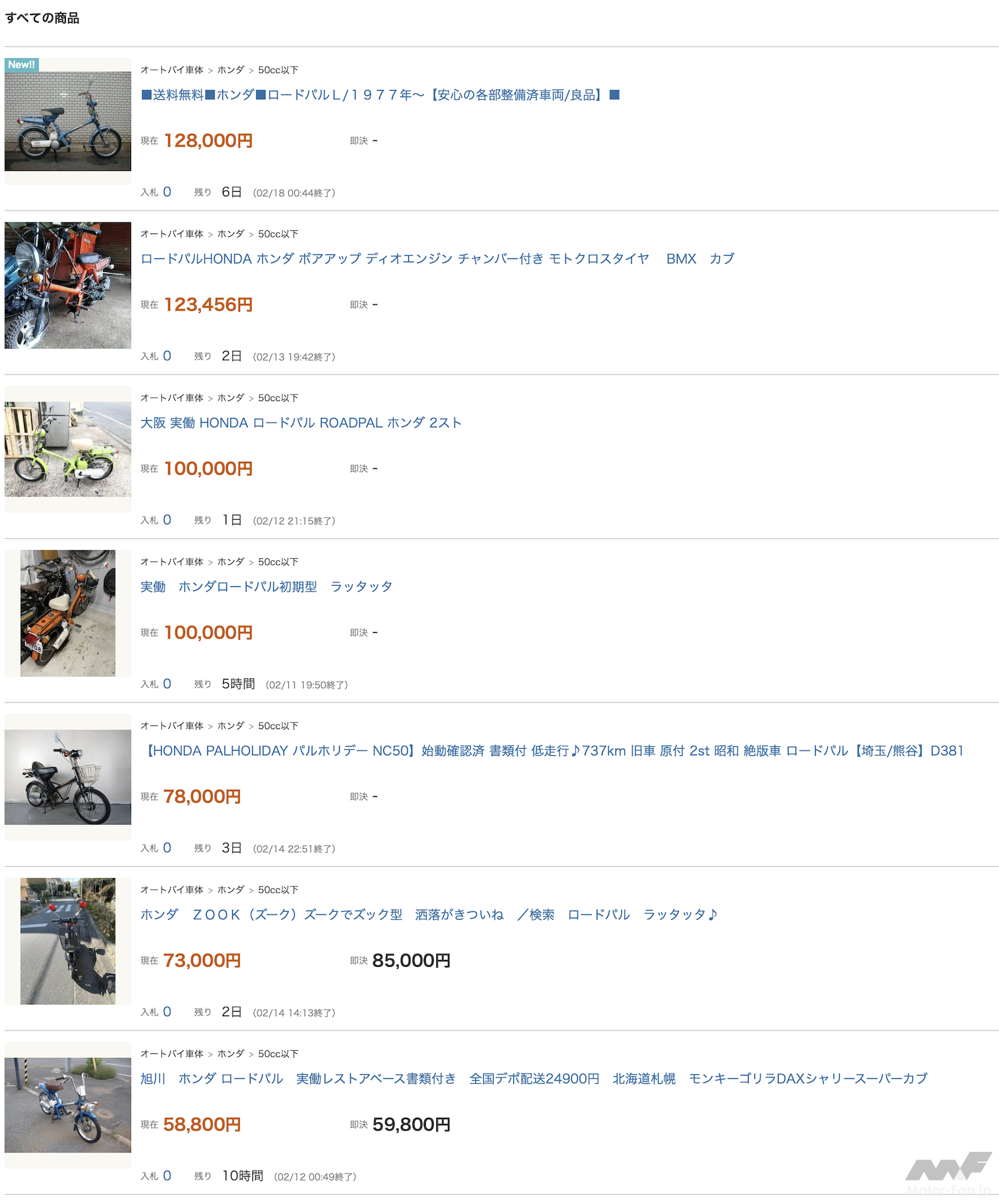 ホンダ・ロードパルは1976年に発売された女性向けの原付で、独特のエンジンスタート方式を「ラッタッタ〜」というキャッチフレーズにしたテレビCMで一躍大人気になった。ソフトバイクなんて呼び方が生まれたのもロードパルのヒットが理由で、翌年にヤマハからパッソルが発売されると激戦区になるほどだった。そこで今回はロードパル系がどのような値段でやりとりされているのか確認してみることにした。今後の注目株になるかもしれないから要チェックだ!