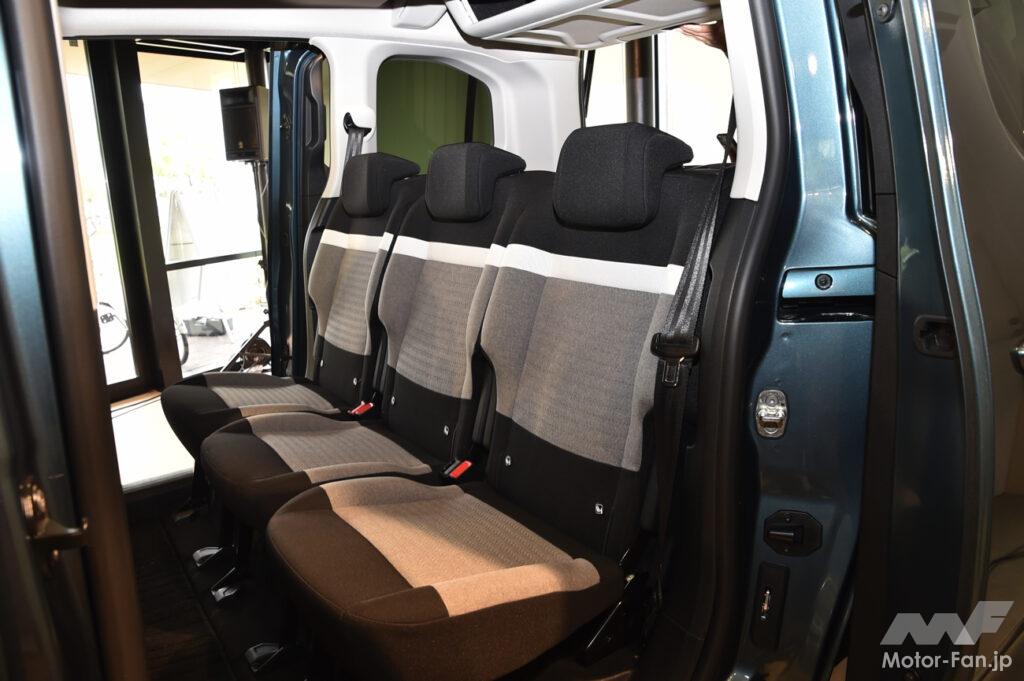 展示車両は5名乗車(ベルランゴ)と7名乗車(ベルランゴ・ロング)が用意されていたが、7名乗車のベルランゴ・ロングは三列目シートを外してラゲッジルームを拡大、荷物を満載した状態での展示だっため、三列目シートを見ることができなかった。しかし、二列目シート以降には特に変更はないため、従来モデルと同様と考えて良いだろう。