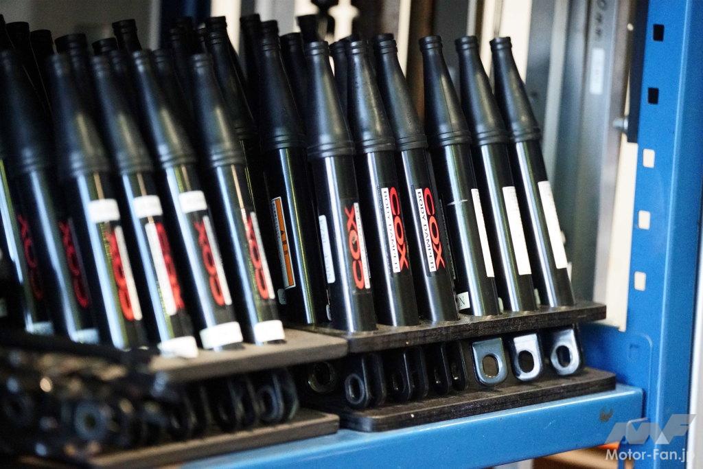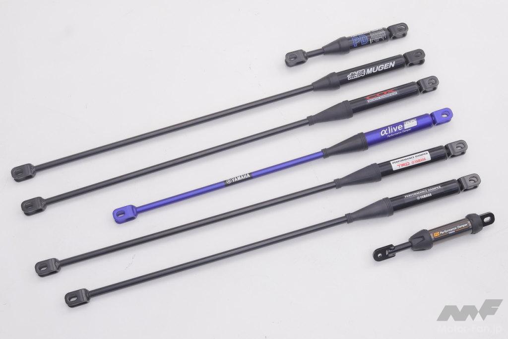 開発のため基準となる様々な減衰力を用意したパフォーマンスダンパー。 取り付け部材により剛性が変化し乗り味を大きく左右するという。 セッティングのための様々な長さのロッドも多数用意する。 横田 一番おっしゃっていただけるのが「乗り心地がすごく良くなった」ですね。「疲れにくくなった」「子供が酔いにくくなった」とも言われます。その他には、「ステアリングの反応が良くなってハンドルを切る角度が減った」と感じてくださるかたもいらっしゃいます。