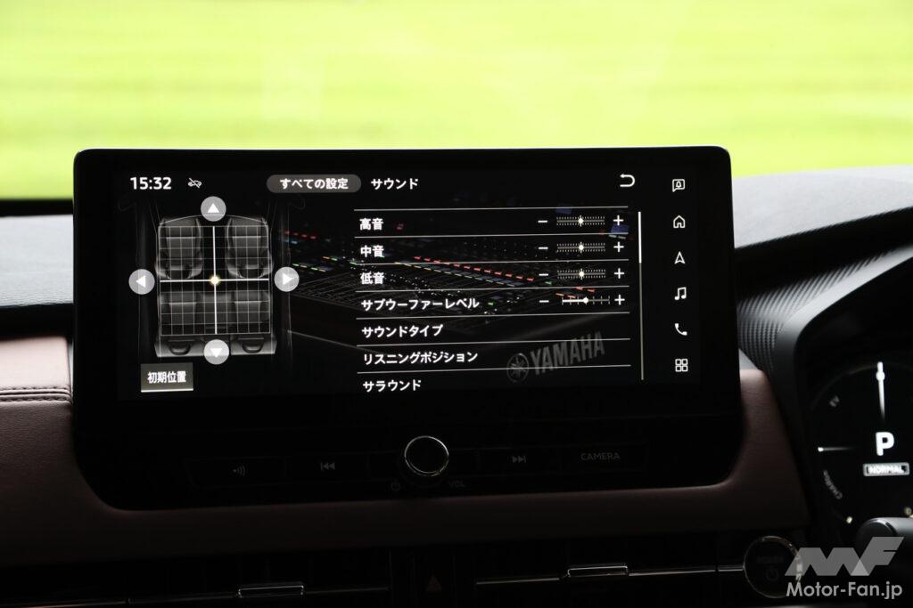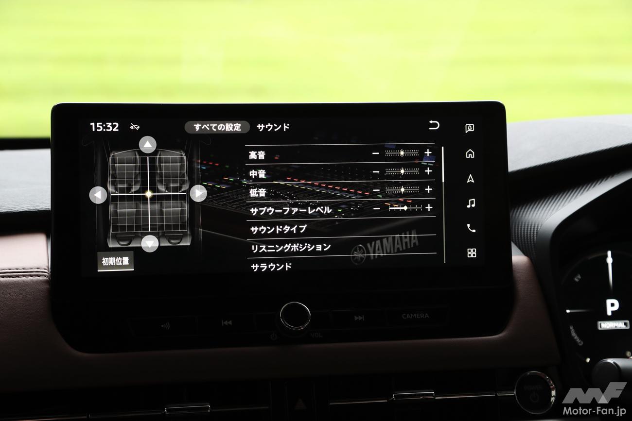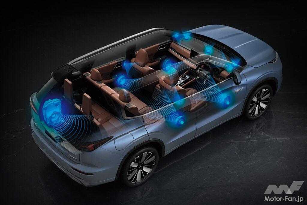 従来モデルからBOSEのオーディオを採用するなど、EVらしい静粛性を活かした音響環境にこだわってきたアウトランダーだが、新型ではアウトランダー専用としてヤマハと共同開発したオーディオシステムを採用。”音”へのこだわりはさらなる高みへと到達した。