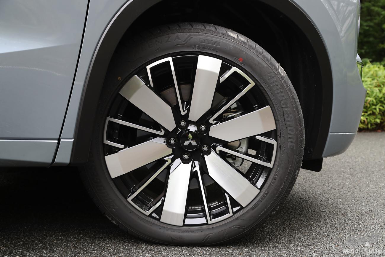 2.4L直列4気筒DOHC16バルブMIVECエンジンにツインモーター4WDを組み合わせるスペックは基本的に全車共通。5名乗車モデルにエントリーグレードとして用意される「M」にのみ18インチタイヤを装着するが、「G」「P」系は全車20インチとなる点が異なっている。