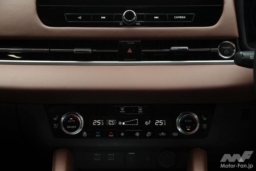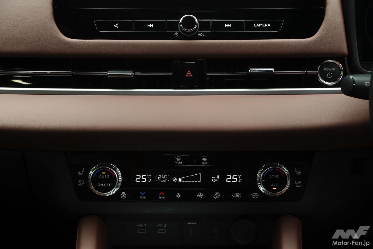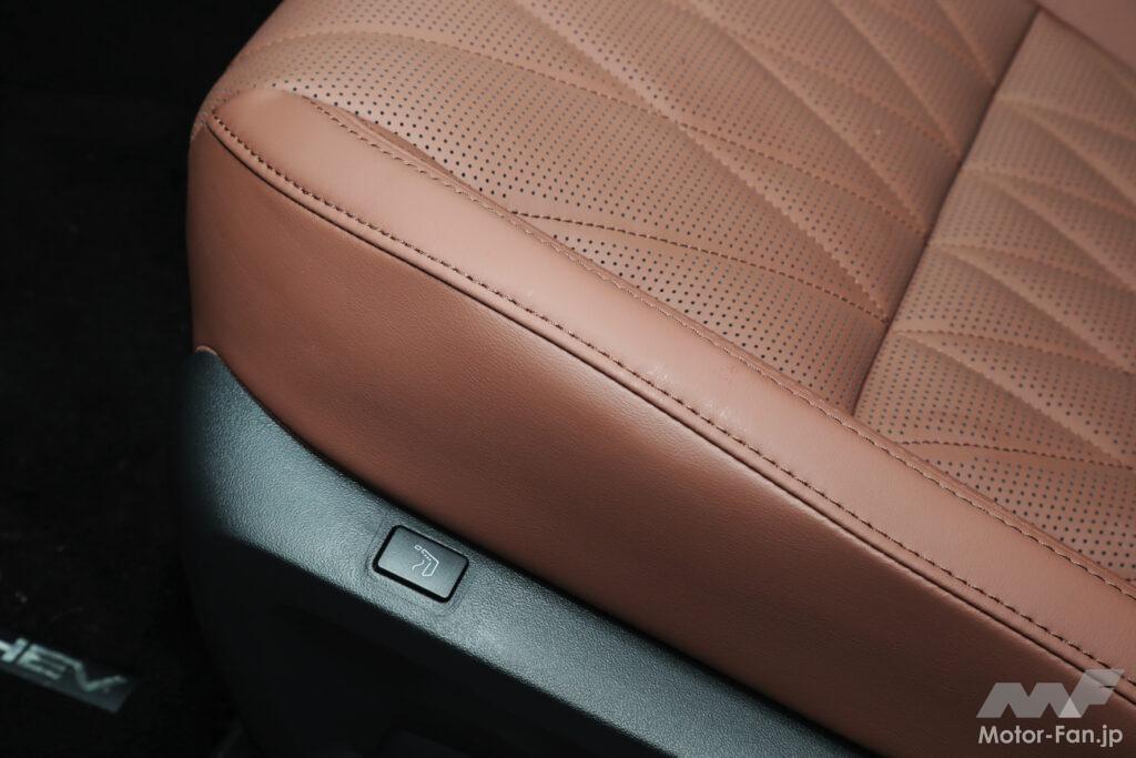 「P」系グレードにはセミアニリンレザーシートを標準装備するだけでく、運転席と助手席にはシートベンチレーションを採用。夏場に暑くなりやすいレザーシートでも快適さを高めているだけでなく、エアコンが苦手な人にはありがたい装備だ。