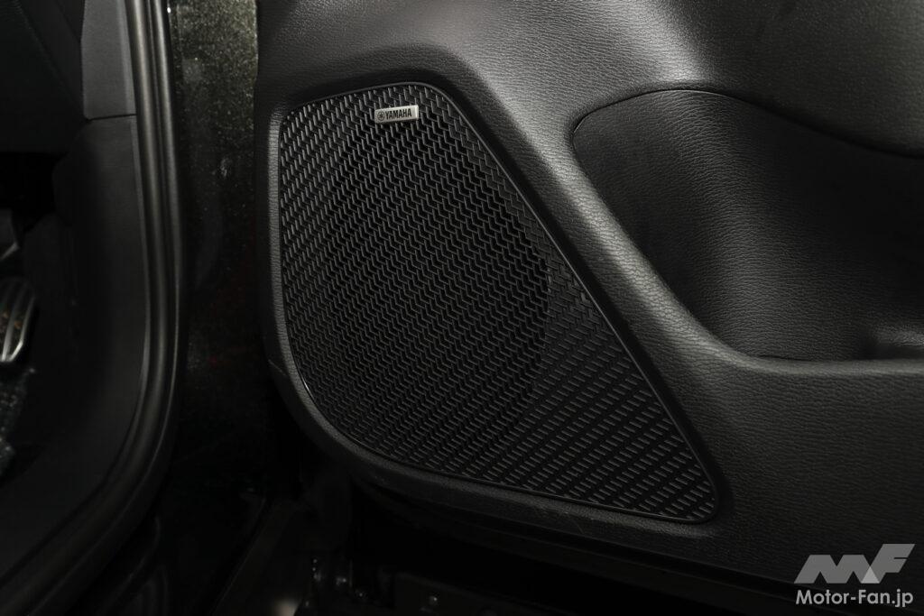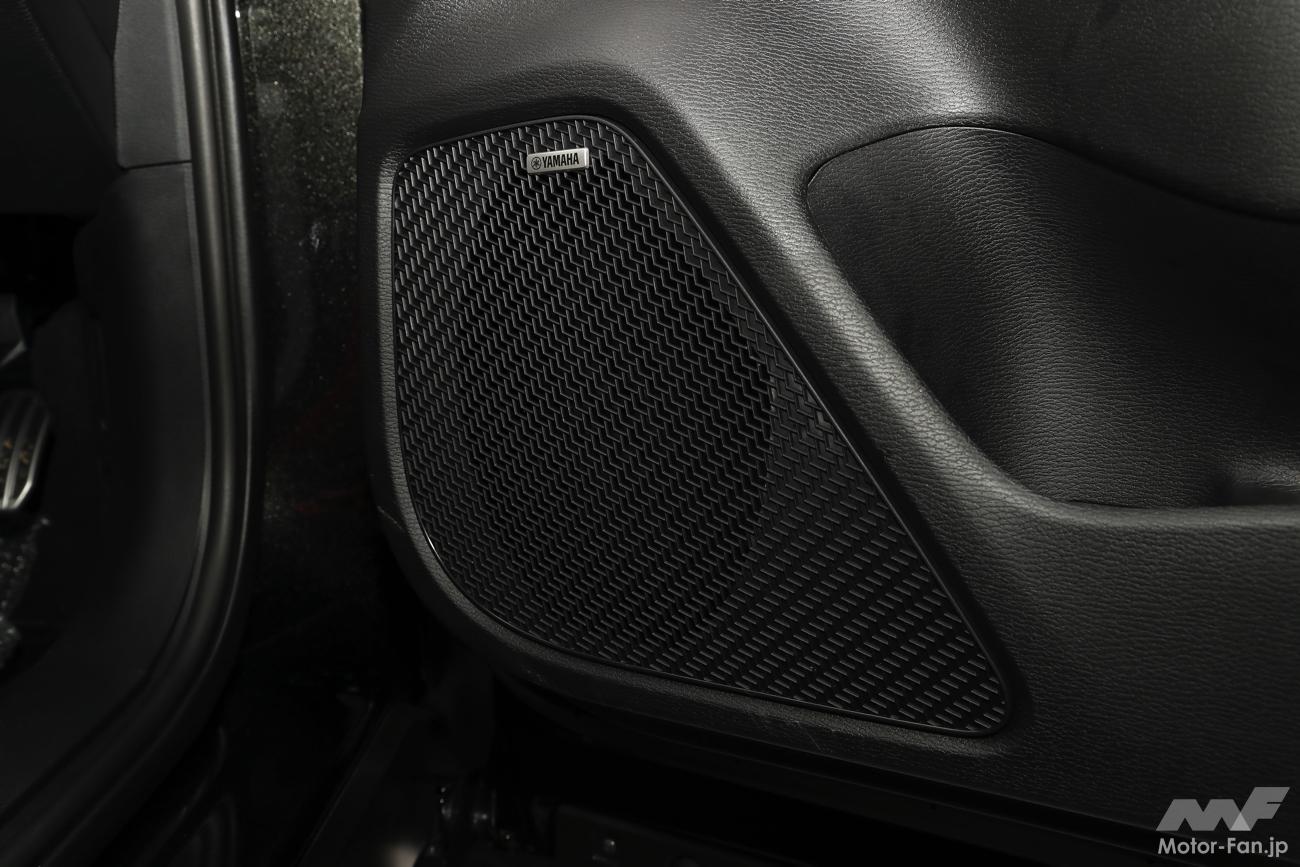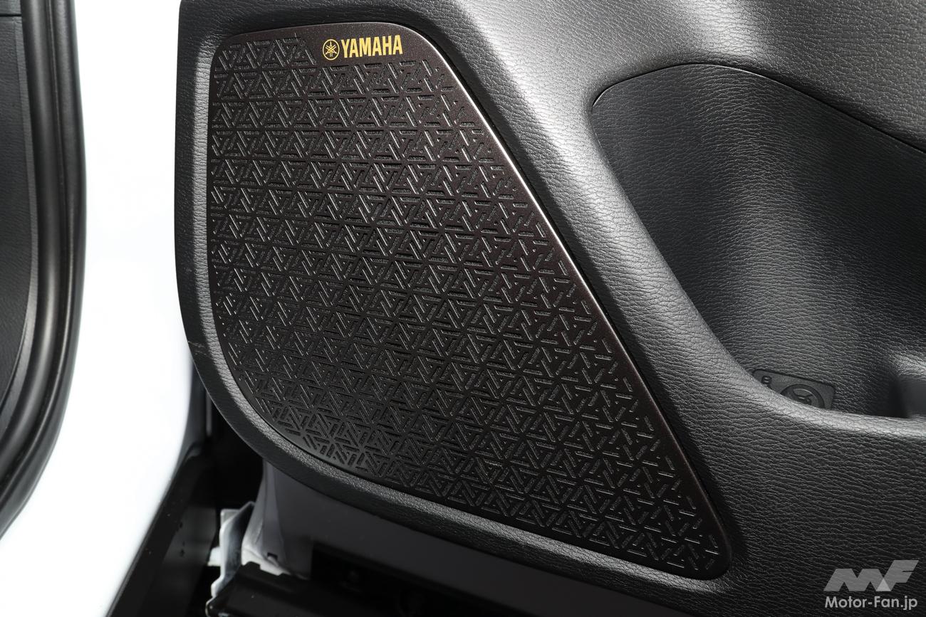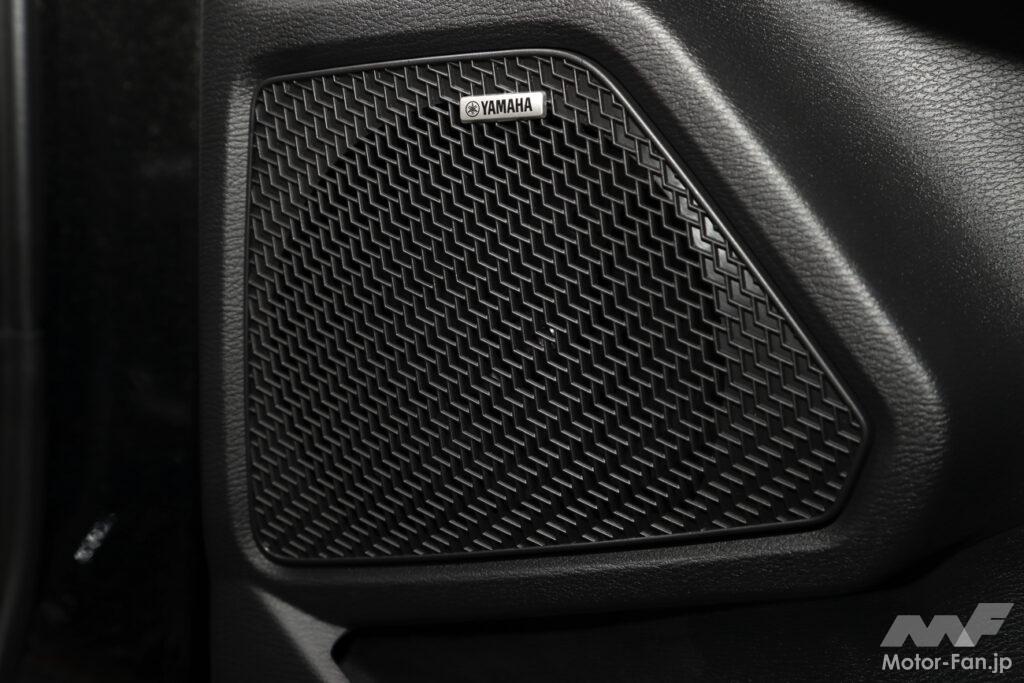 「P」「G」「M」グレードには8スピーカーの「Dynamic Sound Yamaha Premium」を、「P ExectivePackage」には12スピーカーの「Dynamic Sound Yamaha Ultimate」を装備。標準でデッドニングまで施されたインテリアで不要なノイズを防ぎ、アーティストの息づかいまで再現したハイクオリティなサウンドを実現。車内を最高のリスニングルームに変貌させた。