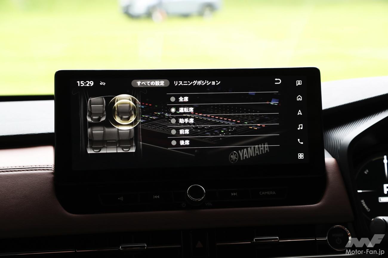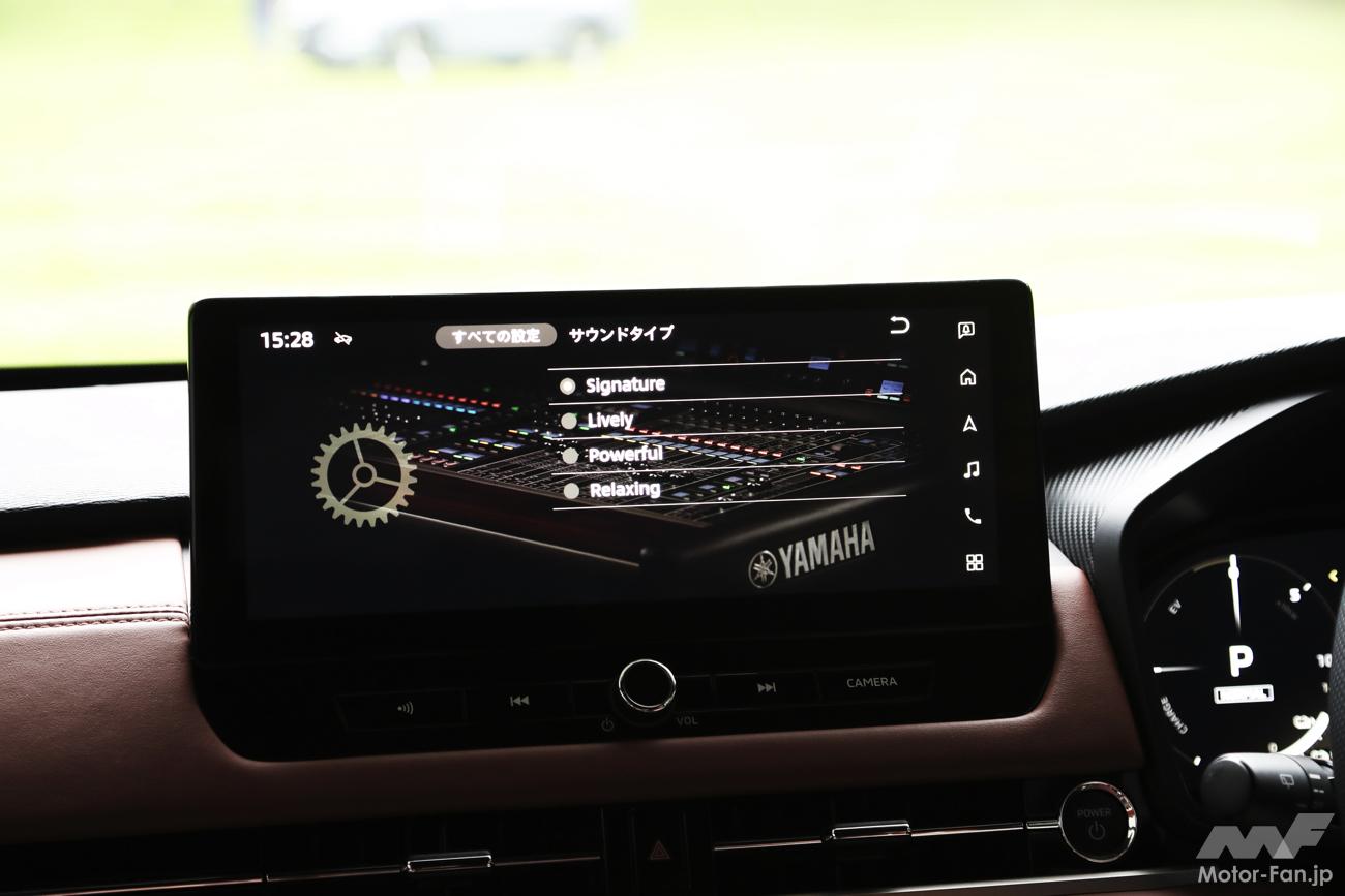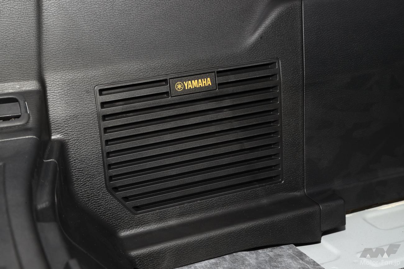 「P」「G」「M」グレードには8スピーカーの「Dynamic Sound Yamaha Premium」を、「P ExectivePackage」には12スピーカーの「Dynamic Sound Yamaha Ultimate」を装備。標準でデッドニングまで施されたインテリアで不要なノイズを防ぎ、アーティストの息づかいまで再現したハイクオリティなサウンドを実現。車内を最高のリスニングルームに変貌させた。