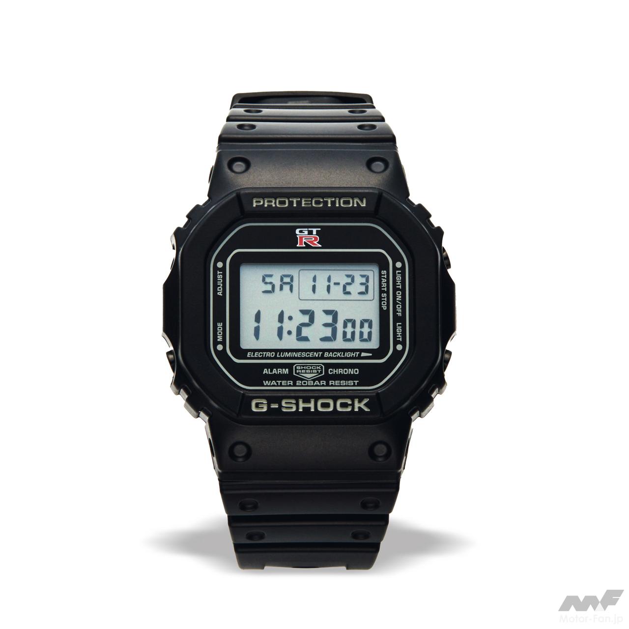 GT-RとG-SHOCKのコラボレーションモデル第6弾が登場する。GT-Rのボディカラーであるミレニアムジェイドをイメージしたカラーリングに、GT-Rロゴが際立つデザイン。シックな装いからカジュアルシーンまで、活躍すること間違いなしのアイテムだ。ベースモデルには初代モデルのDNAを受け継ぐ日本製の「G-SHOCK DW₋5600」を採用し、ボタンとバックルはメタルブラック、裏蓋にはGT-Rのロゴ刻印が施されている。ケース・ベゼル・バンドの材質は樹脂、裏蓋はステンレススチール、ガラスは無機ガラスを採用。税込1万9800円