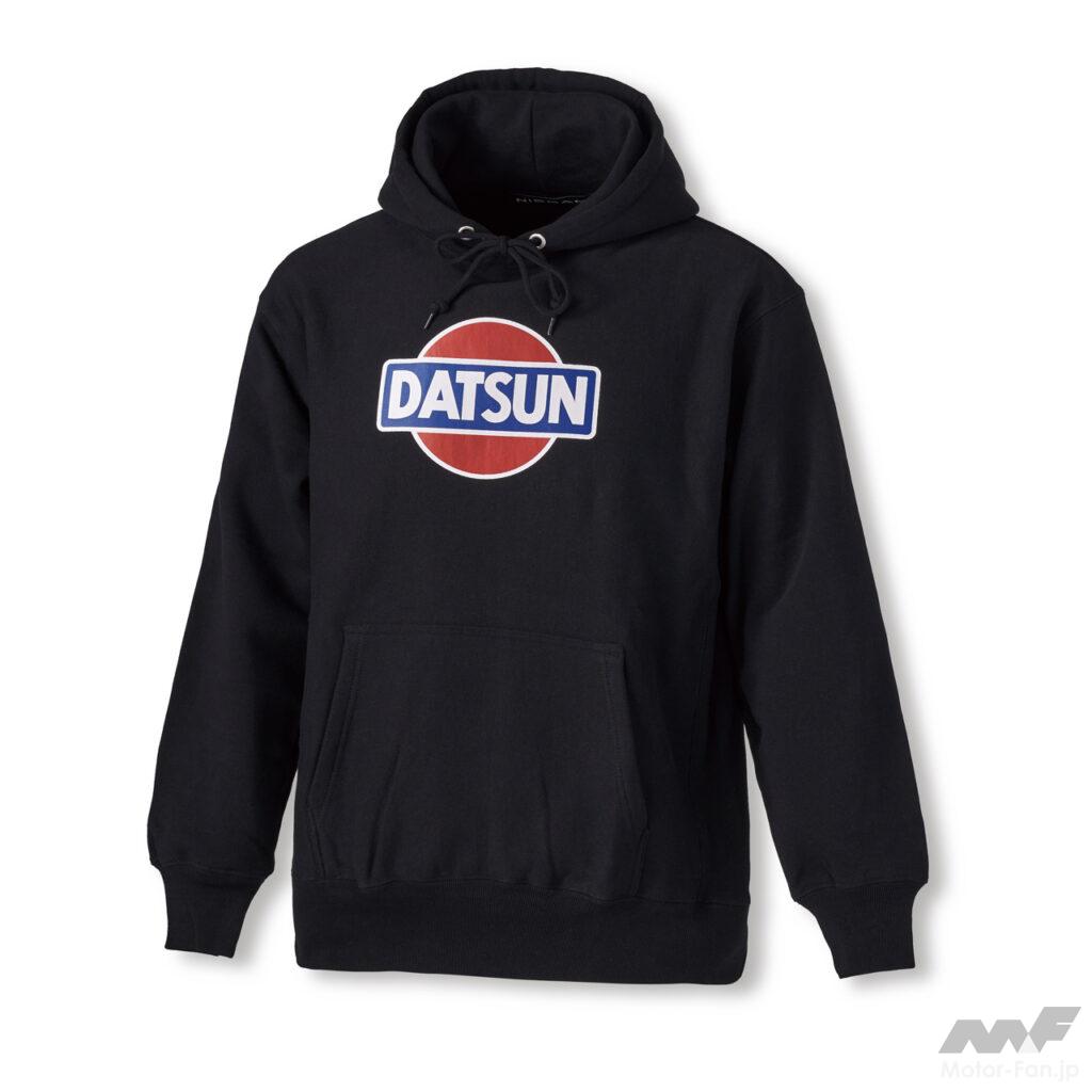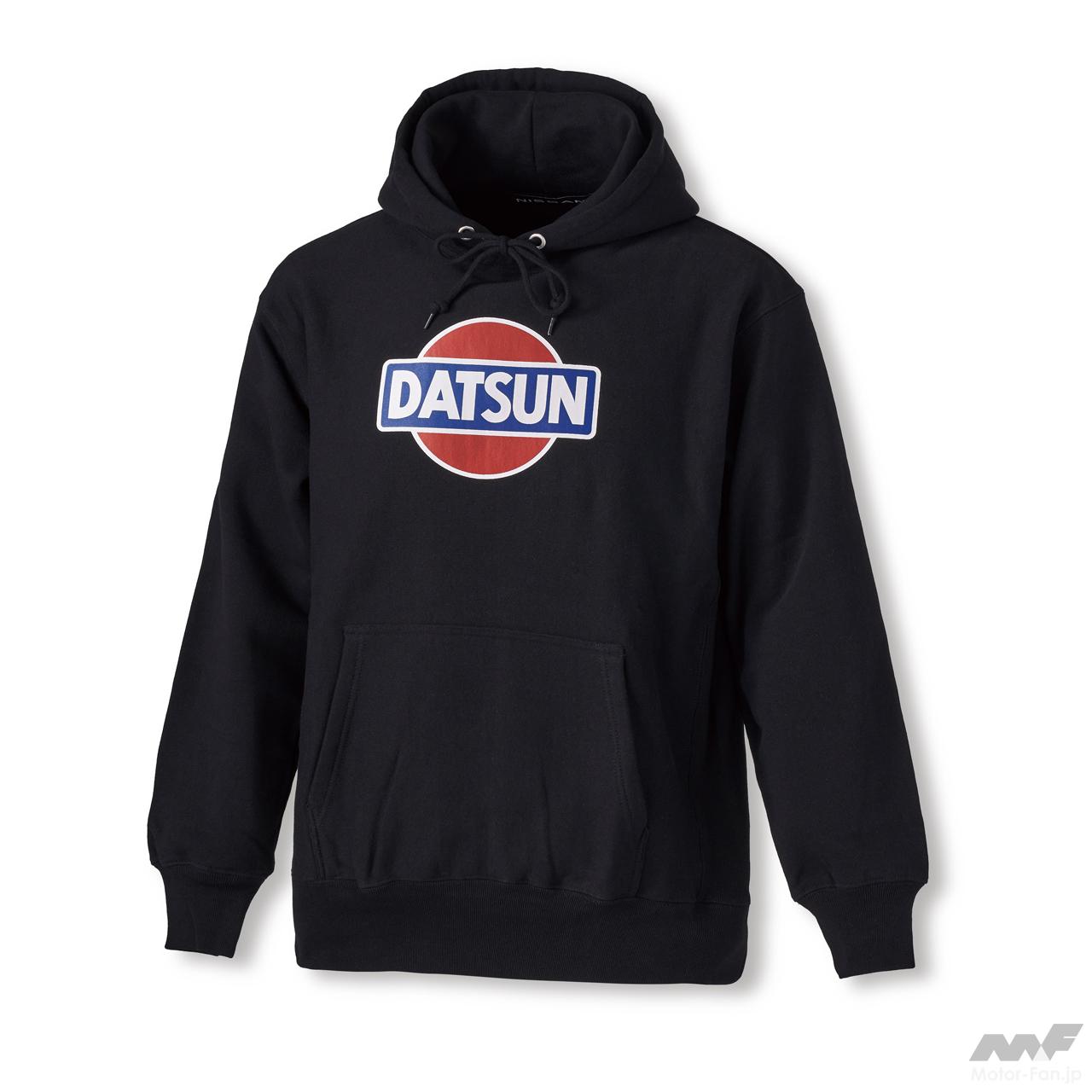日産ワークストリコロールカラーのスウェットトレーナー。背面にもNISSANの旧ロゴが入っており、グループC耐久レースで活躍したかつてのレーシングスーツを思わせるデザインとなっている。素材はコットン100%で、サイズはS/M/L/LL/3L。税込1万2100円