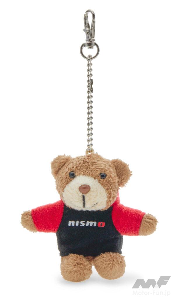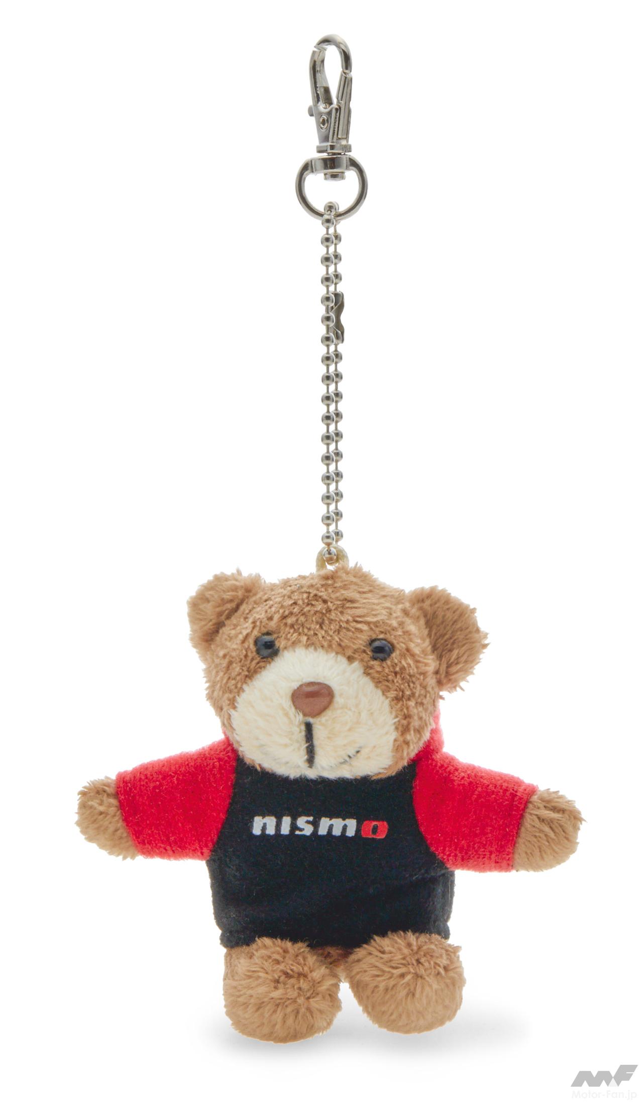 NISMOロゴのパーカーを着用したNISMOベアマスコット。キーホルダータイプになっている。税込2420円