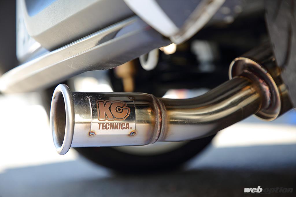 エキゾーストはJQR試験をクリアした車検対応のGTマフラーを装備。メインパイプ50.8φ、テールエンド60φの設定で高い排気効率を実現する。