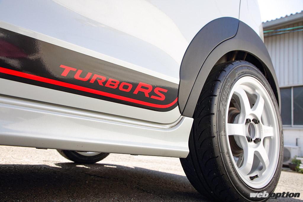 軽自動車チューンを得意とする“KCテクニカ”では、そんな5AGS搭載のアルトターボRSをベースに、快速シティコミューターを作り上げている。