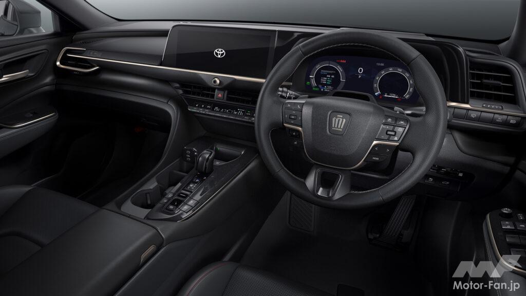 ベースモデルは2.5Lプラグインハイブリッドシステムを搭載するクラウン スポーツRSで、専用のマットメタルのボディに、光沢感のある専用内装色ブラックラスターを組み合わせている。