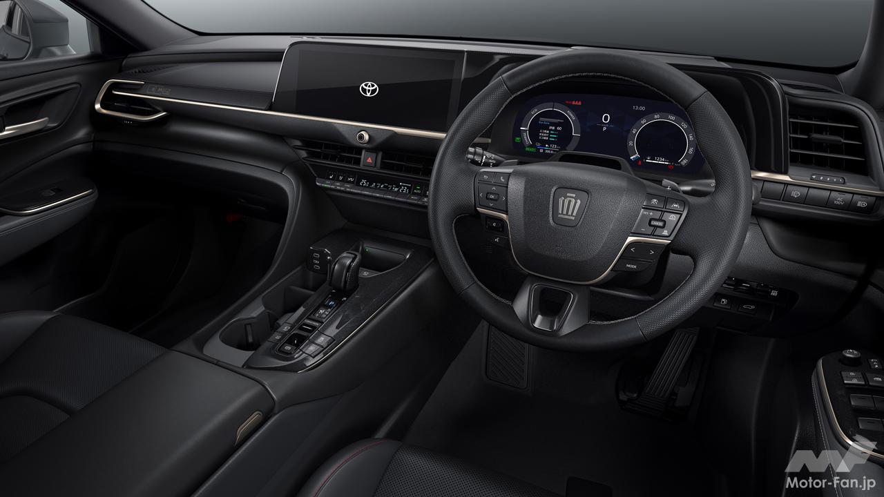 ベースモデルは2.5Lプラグインハイブリッドシステムを搭載するクラウン スポーツRSで、専用のマットメタルのボディに、光沢感のある専用内装色ブラックラスターを組み合わせている。