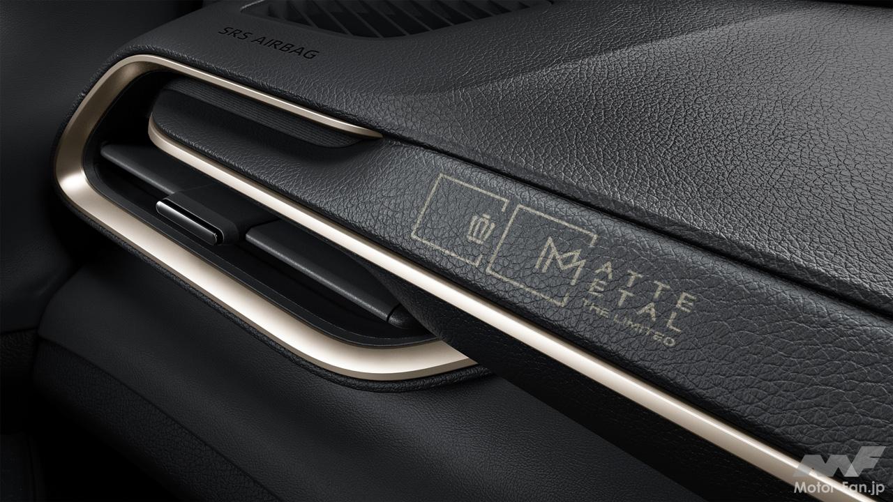 インテリアでは、インパネに『THE LIMITED-MATTE METAL』専用のレーザー加飾を刻印しているほか、ステアリングホイールにも専用加飾を施し、特別感を演出。ステアリングスイッチ周辺はウォームスティール、スポークはダークグレーメタル、ステッチはライトグレーだ。