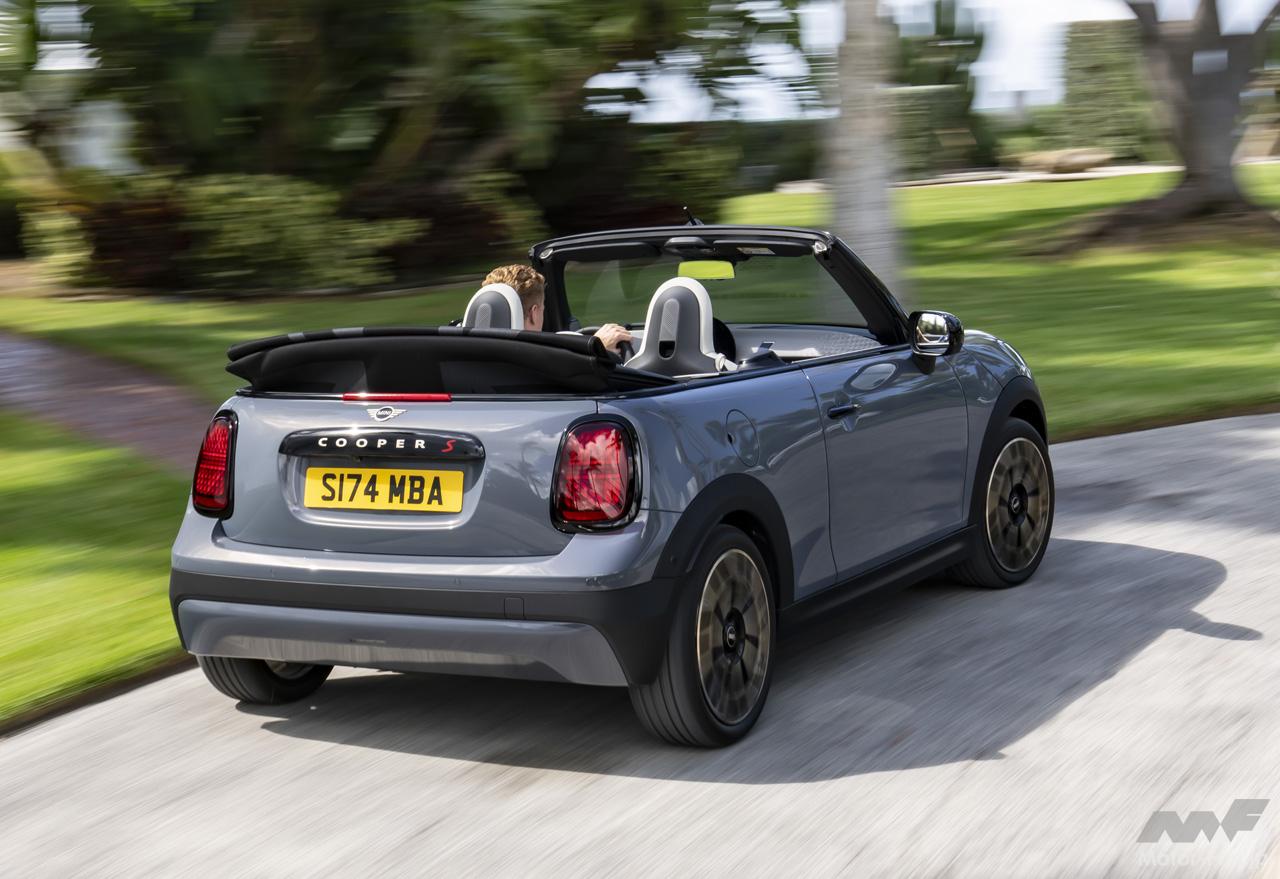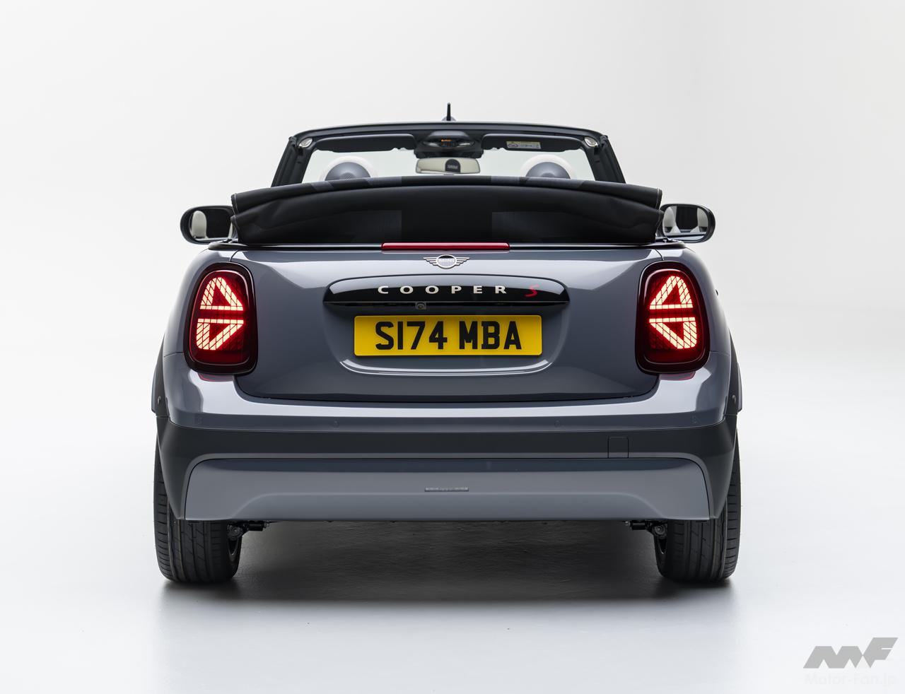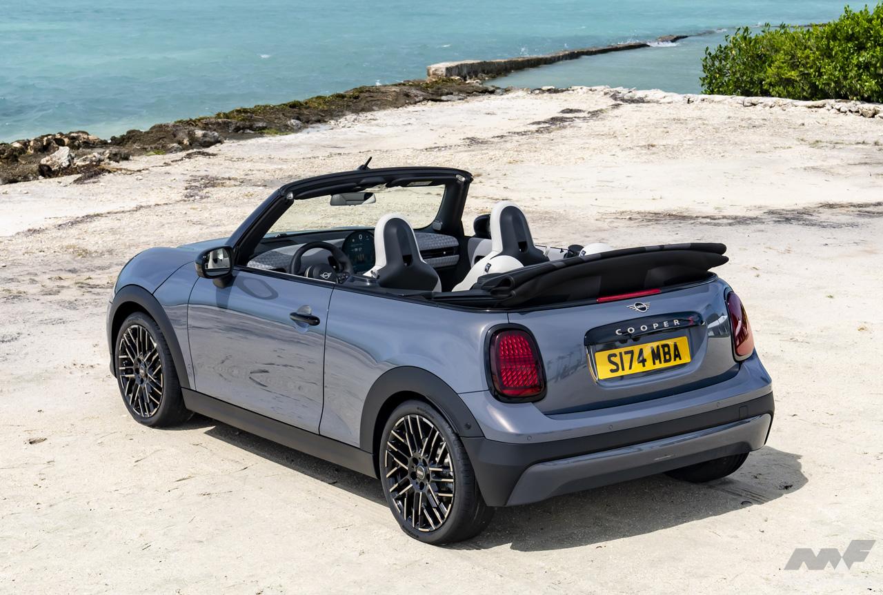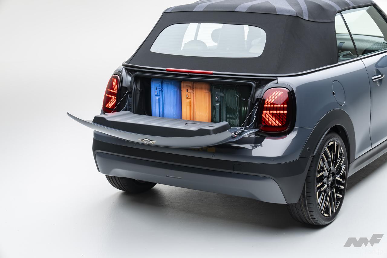 日本仕様はMINIクーパー・コンバーチブルCとMINIクーパー・コンバーチブルSのガソリン車2グレードを設定。いずれも2.0L直列4気筒ターボエンジンが積まれ、Cは163ps/250Nm、Sは204ps/300Nmを発揮。いずれも7速DCTを組み合わせる。トリムはいずれのグレードもClassicが標準。オプションでFavoured(税込16万4000円)が用意され、SではさらにJCW(税込42万7000円)も選べる。