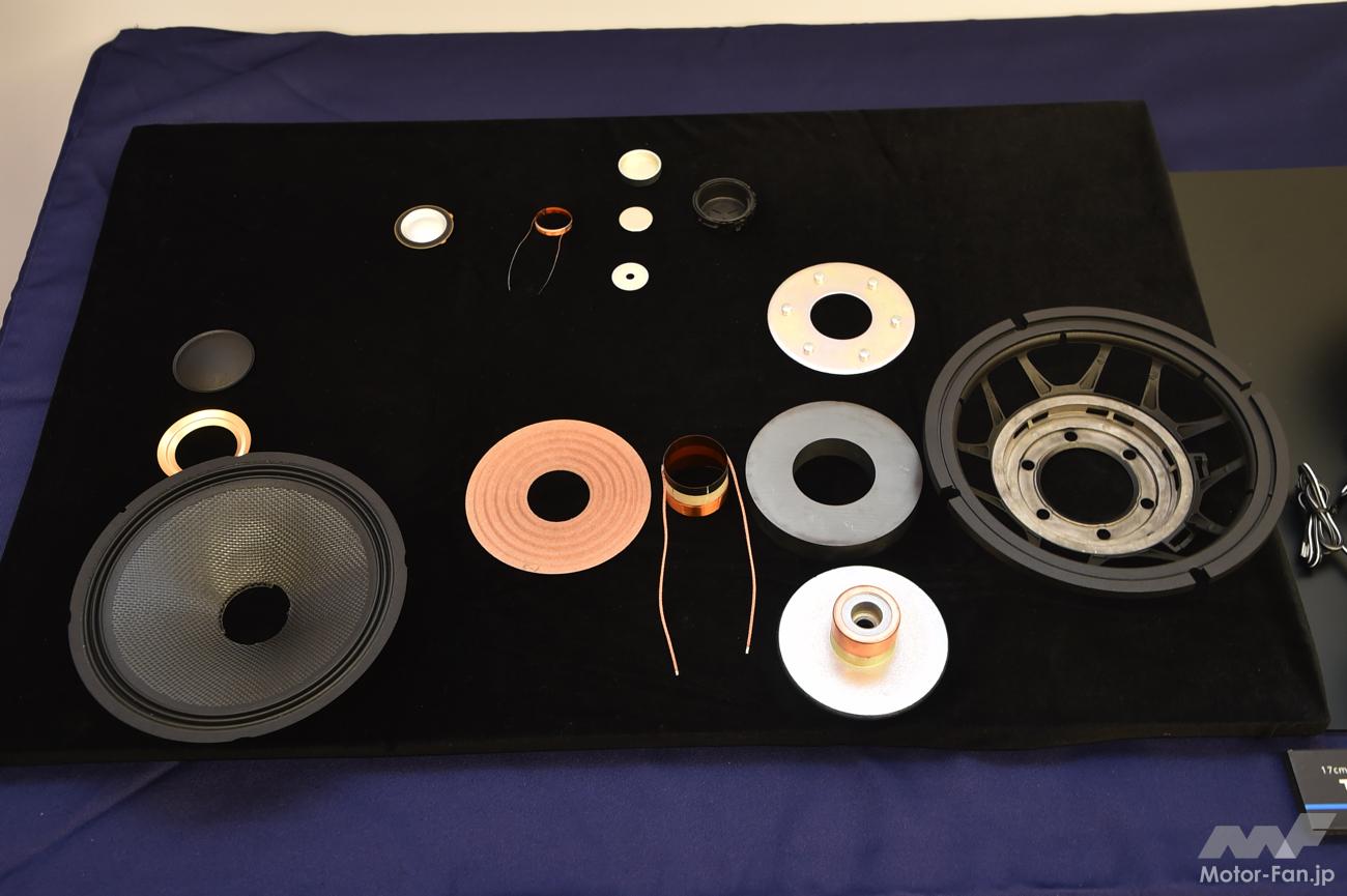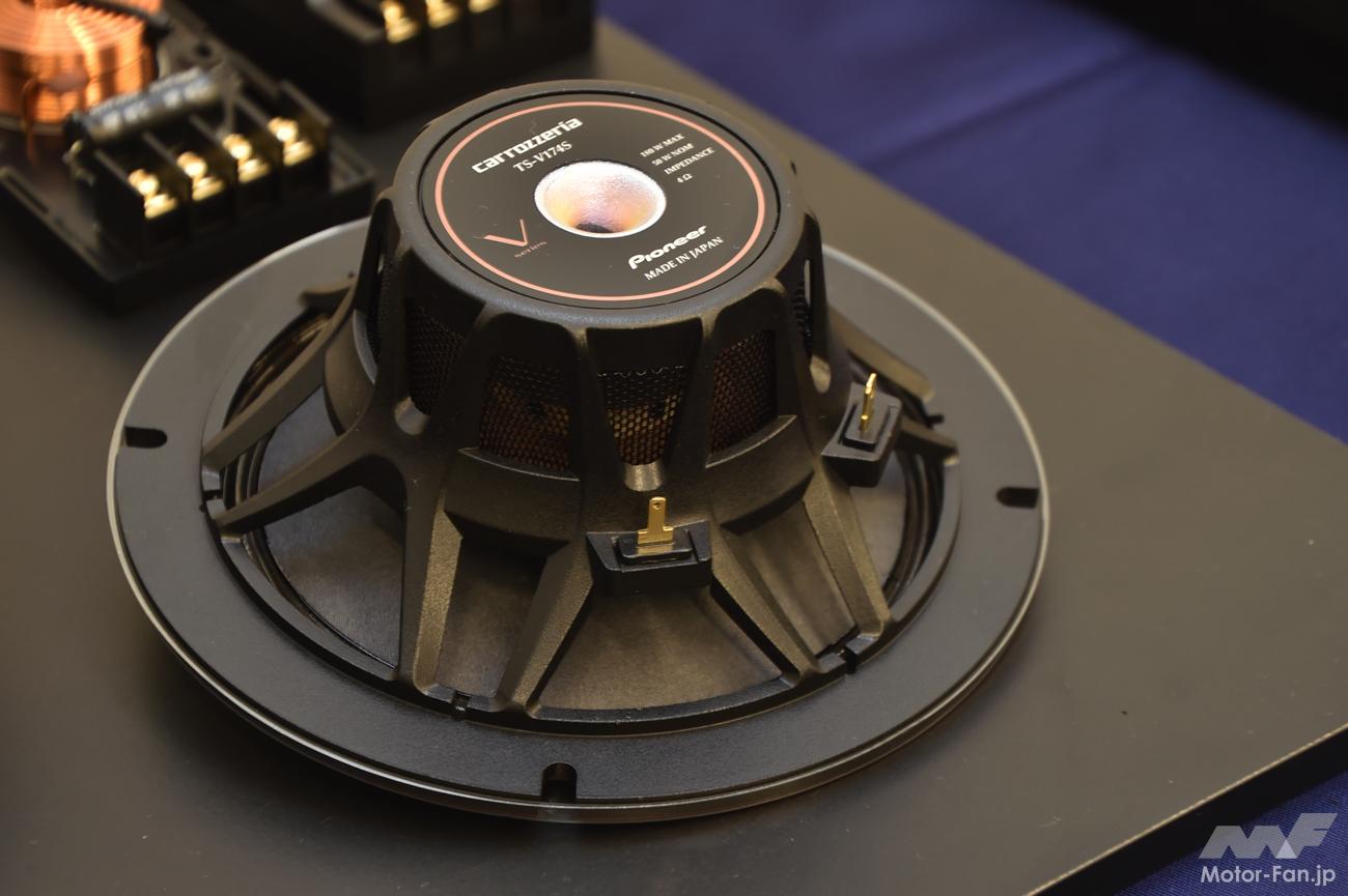 7年ぶりのモデルチェンジとなった新型のカスタムフィットスピーカーは、ハイレゾ音源の再生に対応し、臨場感のあるサウンドを実現している。ウーファーの振動板径の大型化とフレームの深型化により、原音に忠実でありながら情報量豊かで開放的な音楽再生を実現し、車での幅広い音楽体験を提供する。
