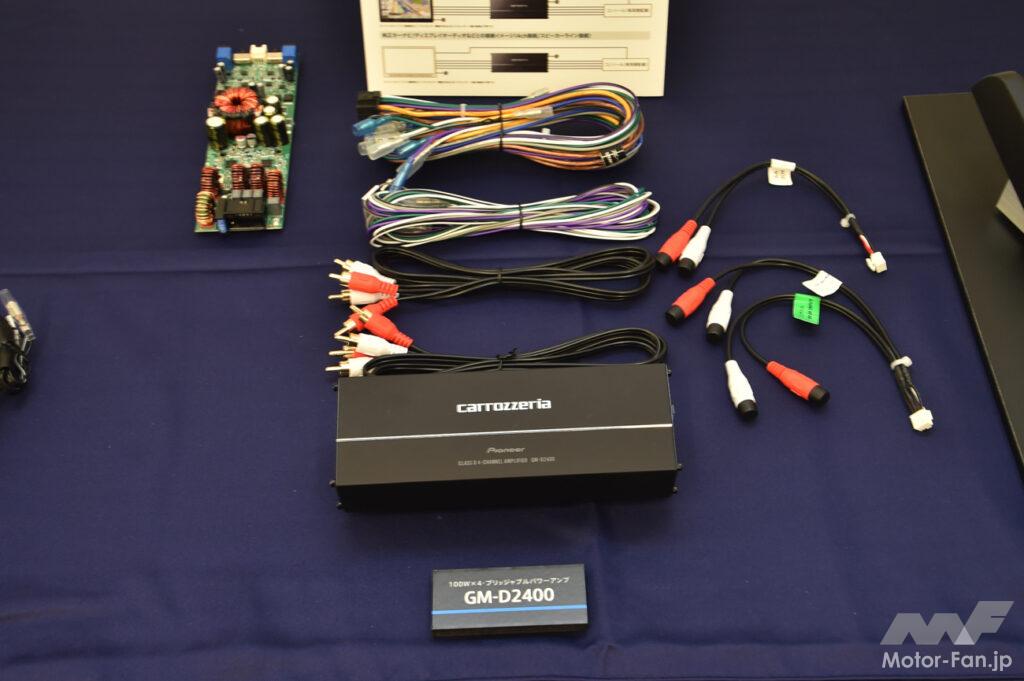 ハイスピードなパワー素子「MOS FET」を採用した高効率なハイパワーClass Dアンプの搭載により、コンパクトサイズでありながら100 W×4 chを実現。高性能なオペアンプと直列抵抗成分(ESR)が小さい電解コンデンサーの採用により、S/N比を向上させるとともにダイナミックレンジを拡大し、車室内での明瞭な音像定位と広帯域にわたるクリアな音色を実現した。また、電源コードに高品位なOFCケーブルを採用し、信号の伝送ロスや歪みを低減している。