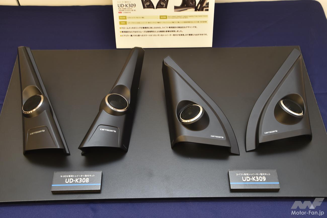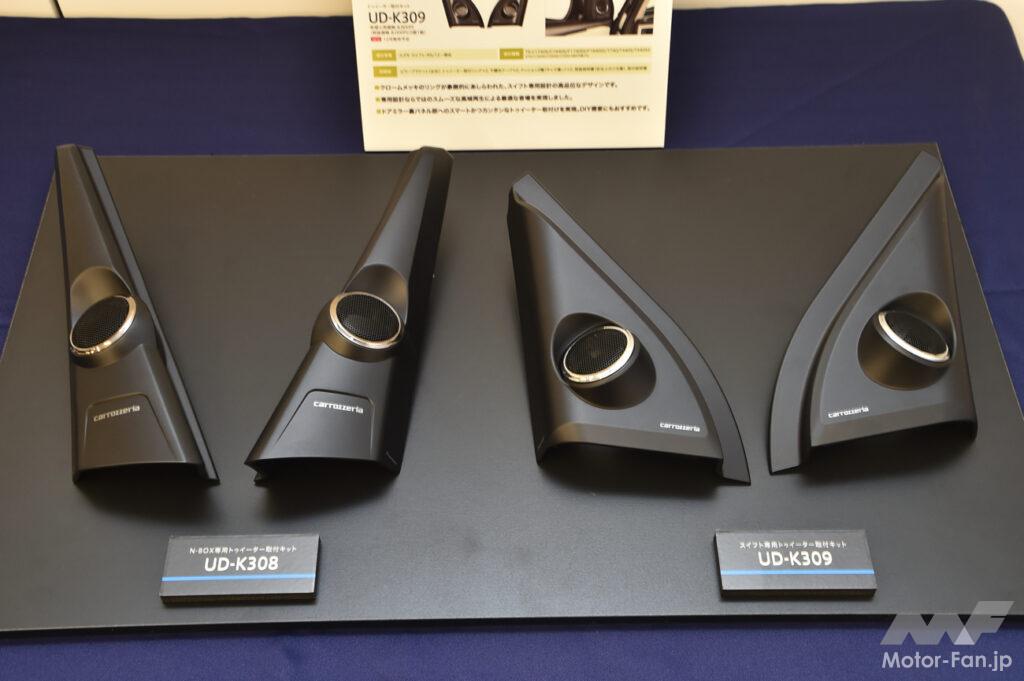 そのほかにも、トゥイーターにマットブラック塗装を施し、ゴールドカラーのリングを採用した華やかなデザイン。取り付けた後に、向きを調整できる「ロータリー機構」を採用。純正装着位置へのトレードイン取付が可能なブラケットや車種専用変換コード、ウーファー接続用の変換コネクタとアダプターなどを同梱する。