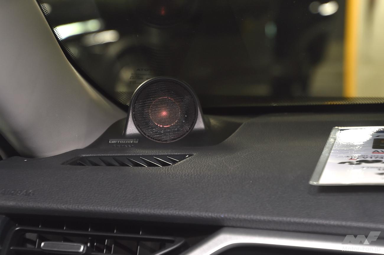 制限の多い車室内において、音楽性豊なサウンドで重要性が高い中音域を指向性に優れたトゥイーターから再生する「Open&Smooth」コンセプトにより、車室内を臨場感豊な視聴空間とする高音質を実現している。