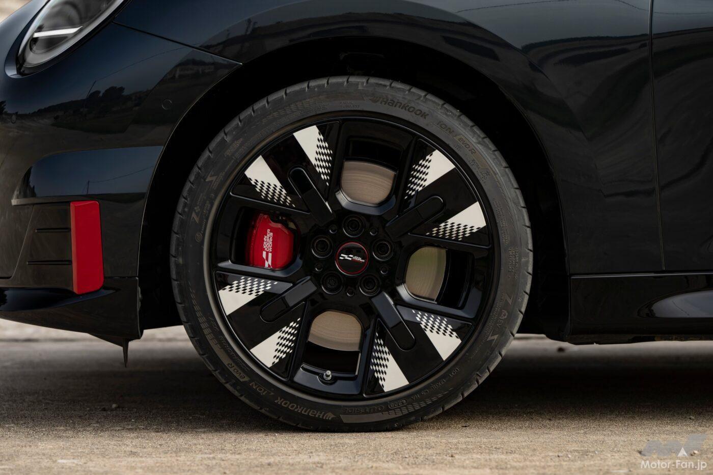 また、JCWモデル専用のサスペンション設定により、ゴーカート感覚が最大限引き出されている。標準装備の高性能・高グリップタイヤも相まって俊敏なハンドリングが実現されている。チリレッドにホワイトのJCWロゴをあしらった強力なブレーキシステムにより、厳しい運転状況下でも正確で安全な減速が可能です。
