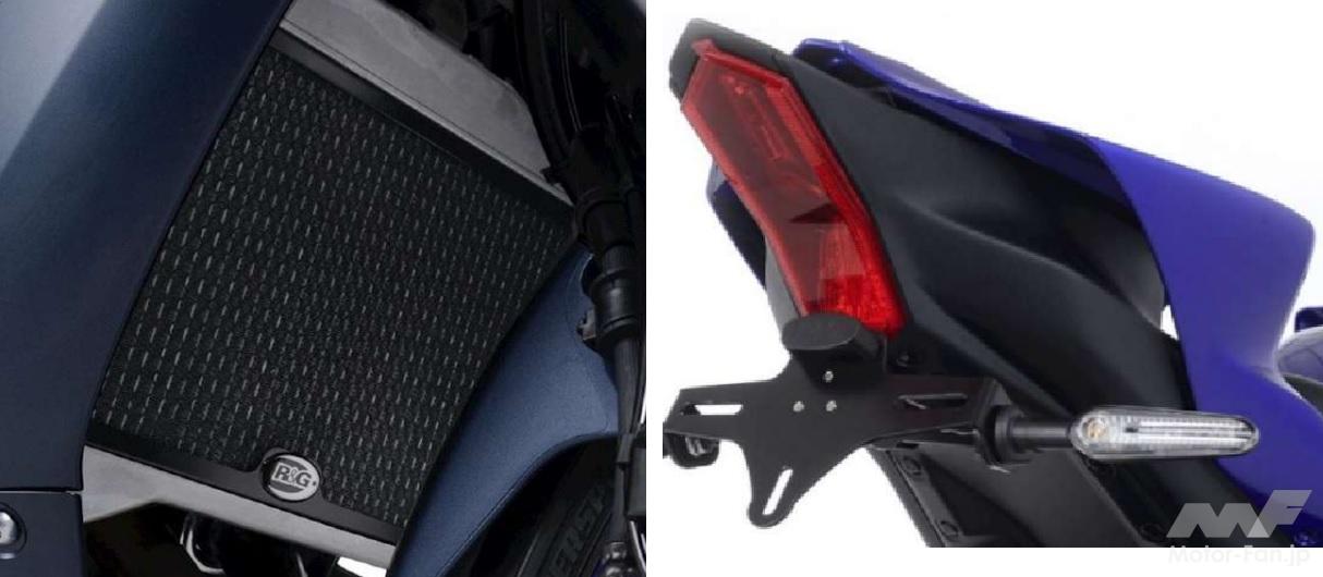 シフトチェンジリンクにシフトスイッチを取り付けて、クラッチを切らずスピーディにシフトアップを可能とした「クイックシフトキット」、万が一の転倒時に車体を保護する「エンジンプロテクター」、そしてニーグリップのホールド性とレーシーなデザインを両立する「プロテクションパッド」がワンセットに。