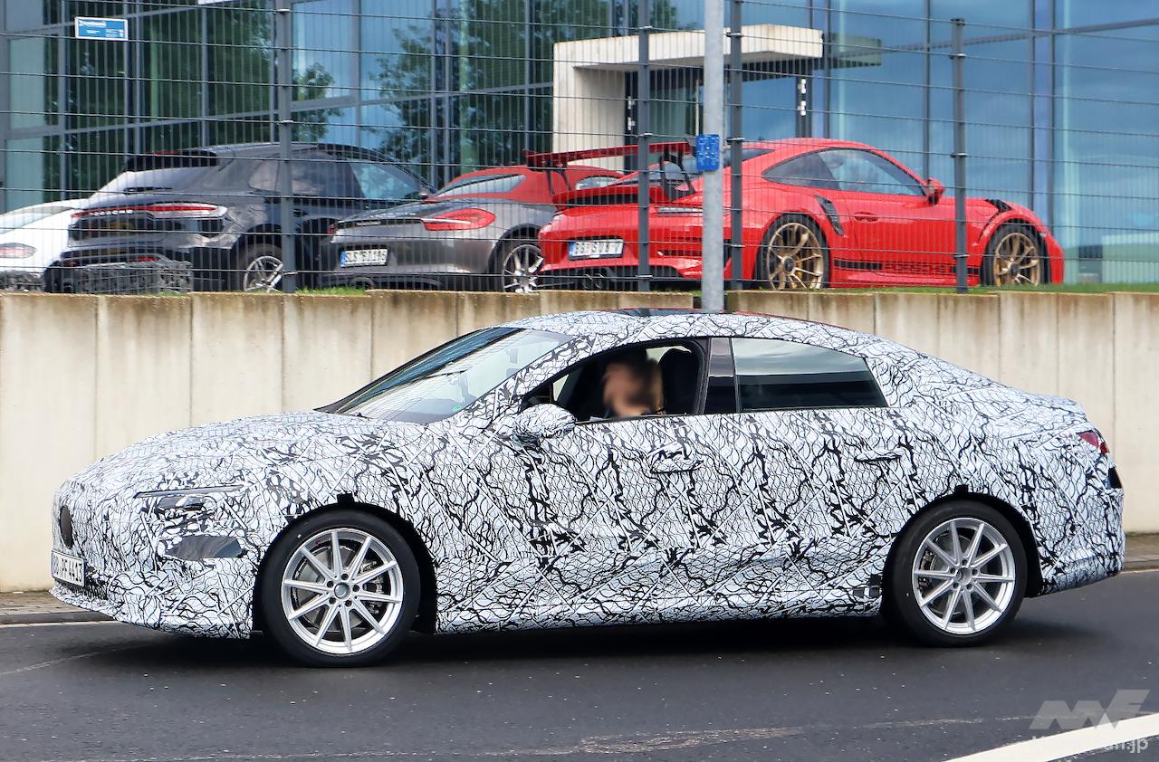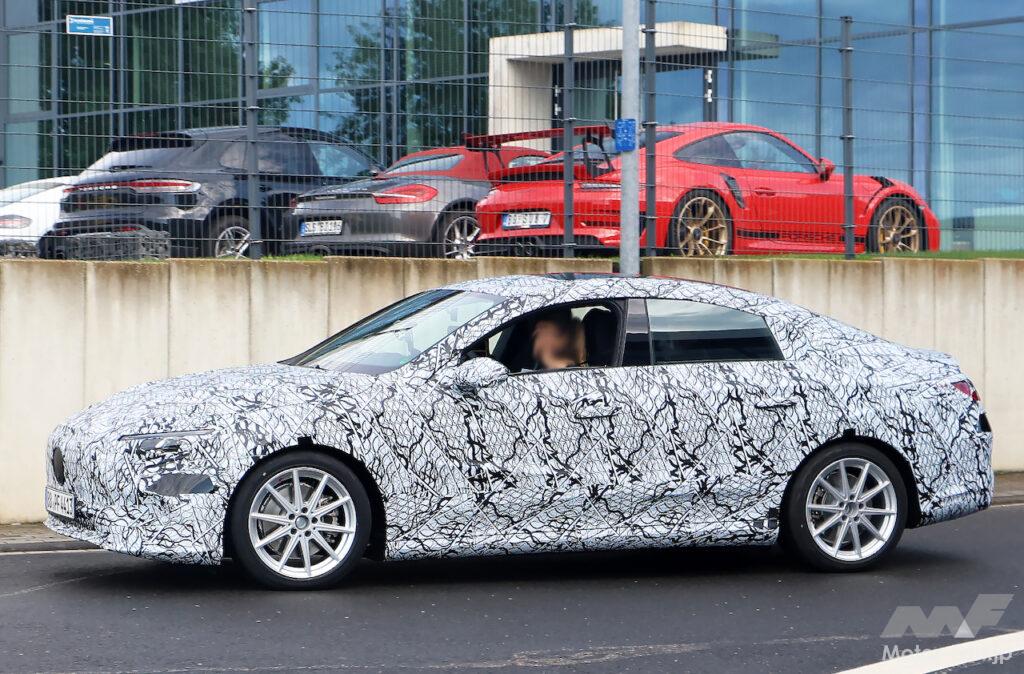 CLA次期型は、基盤となるメルセデスモジュラーアーキテクチャ(MMA)が内燃機関と完全電動パワートレインをサポートすることはわかっている。プロトタイプをよく見ると、リアフェンダーに充電口らしきものが配置されているほか、フロントエンドの完全ガード具合、リアバンパーに排気口が見当たらないなどの理由からこのプロトタイプがEVだと思われる。