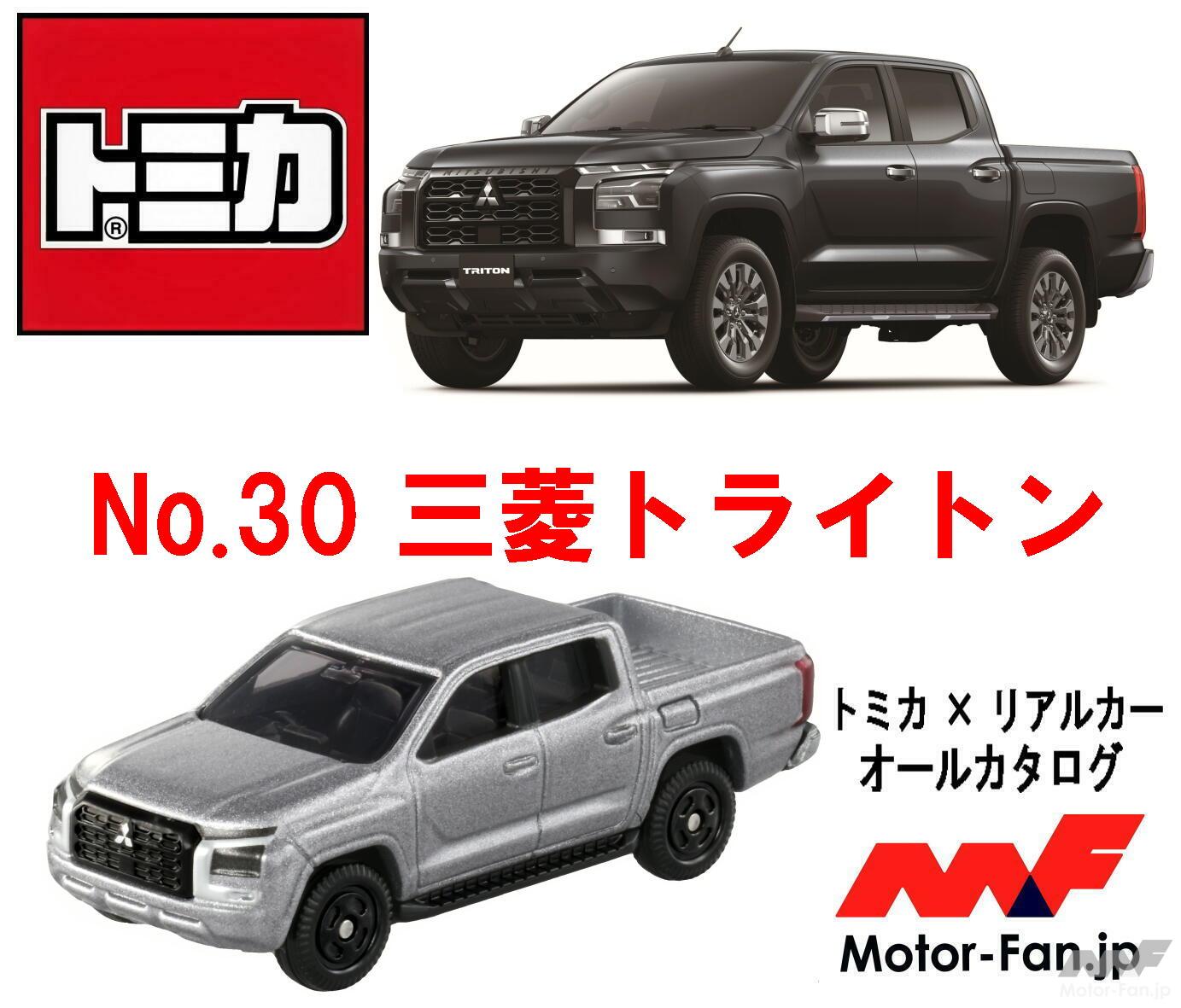 毎月第3土曜日は新しいトミカの発売日です。2024年10月の第3土曜日には、上でお伝えしているように、それまでの『No.30 ダイハツ ハイゼット』に代わって『No.30 三菱トライトン』が登場します。『No.30 三菱トライトン』には、初回出荷のみの特別仕様(特別色)もあります。また、それまでの『No.34 トヨタ アクア』に代わって『No.34 いすゞ エルフ』が登場します。