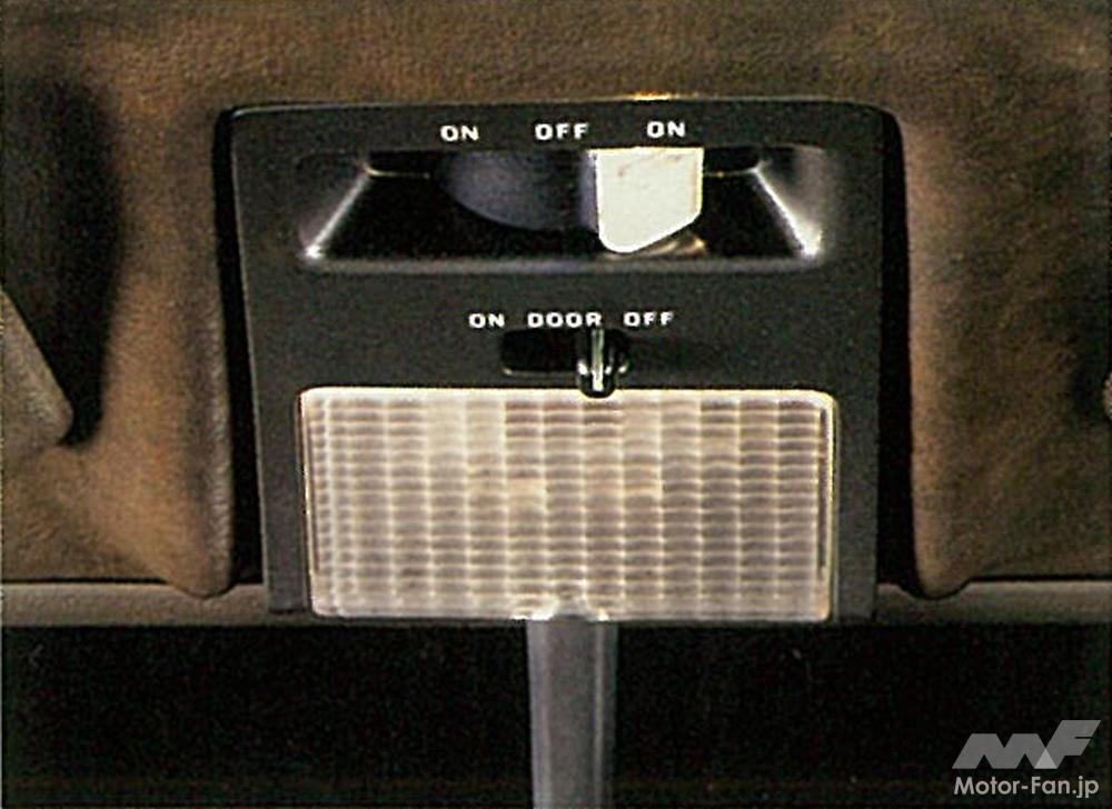 ルームランプのスイッチポジションはいまのクルマと同じで、消灯の「OFF」、ドア開で点消灯する「DOOR」、点灯の「ON」、の3つ。