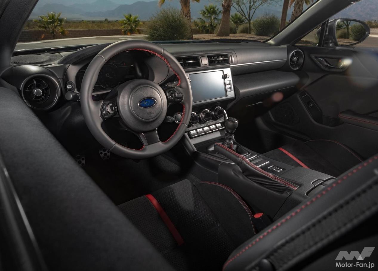 アップグレードは内装にも続き、グレーのレザーボルスターと対照的な黒のウルトラスエード張りのフロントスポーツシートを装備。さらに、グレーのコントラストステッチ、赤いSTIスタートボタン、アルミニウムシフトノブが加わる。