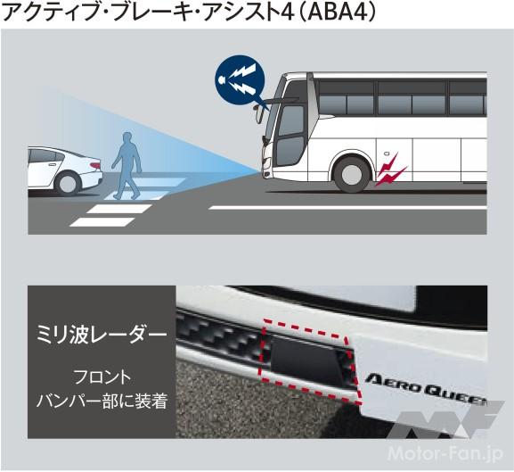 ドライバーの覚醒に関係なく車線を逸脱すると、マルチファンクションモニターの画面表示で伝えるとともに、運転席バイブレーターによる座面左右の振動でドライバーのみに警告する。安全性の向上を図りつつ、乗客の睡眠等も妨げることはない。