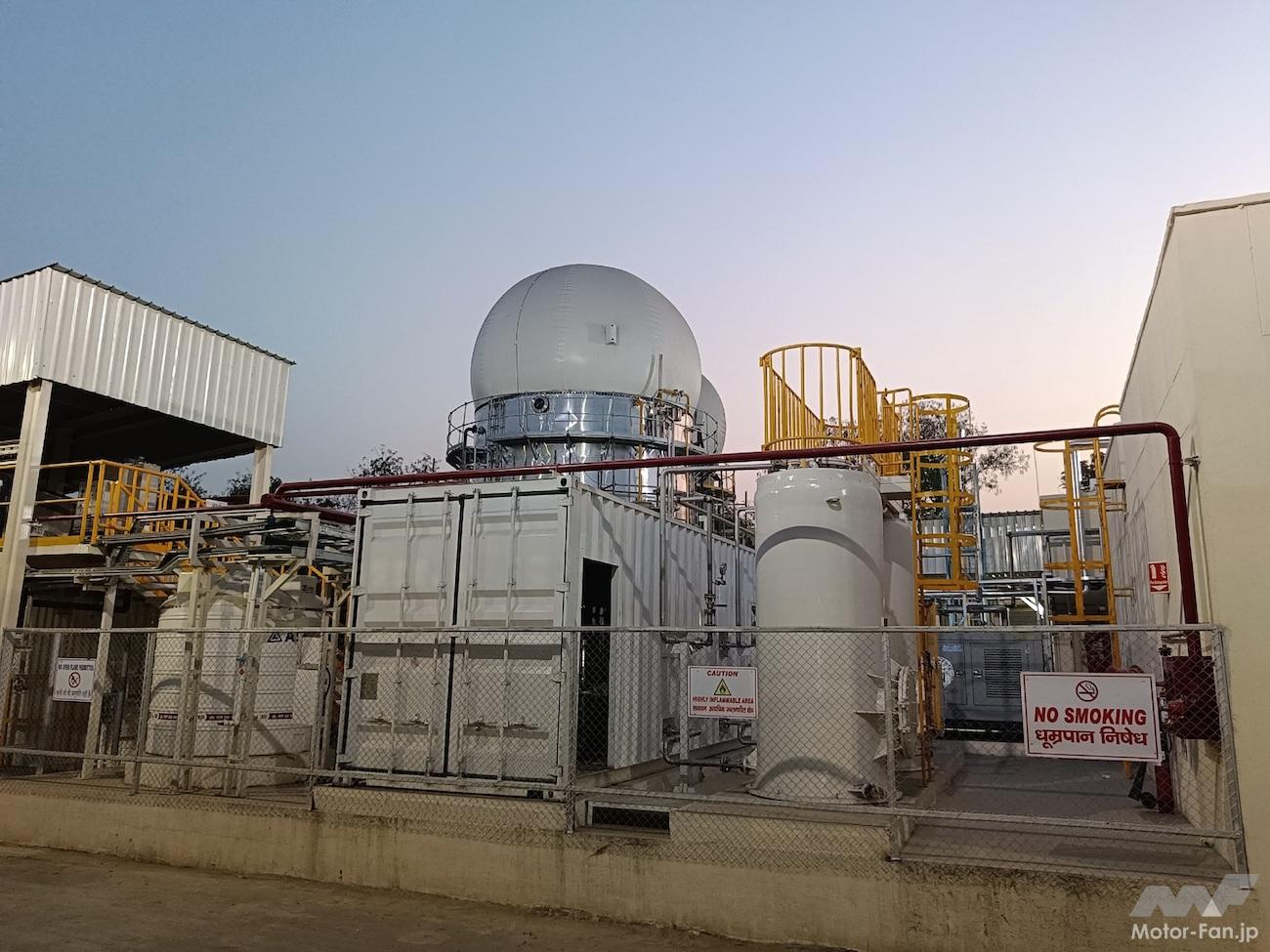 展示されていたワゴンRはインド仕様ということで、タンクの規格が国内の法規に対応しておらず、実験開始に当たっては国内基準を満たしたタンクへの換装といった車両の開発が必須となるそうだ。だが、農村部での実証実験ということなら軽トラのような軽商用車の方が適しているようにも思われる。そのあたりの疑問を口にすると「車両の選定を含めて現在検討中です。タンクにはさまざまなサイズがあるので軽トラに搭載することも技術的には可能ですよ」と話をしてくれた。