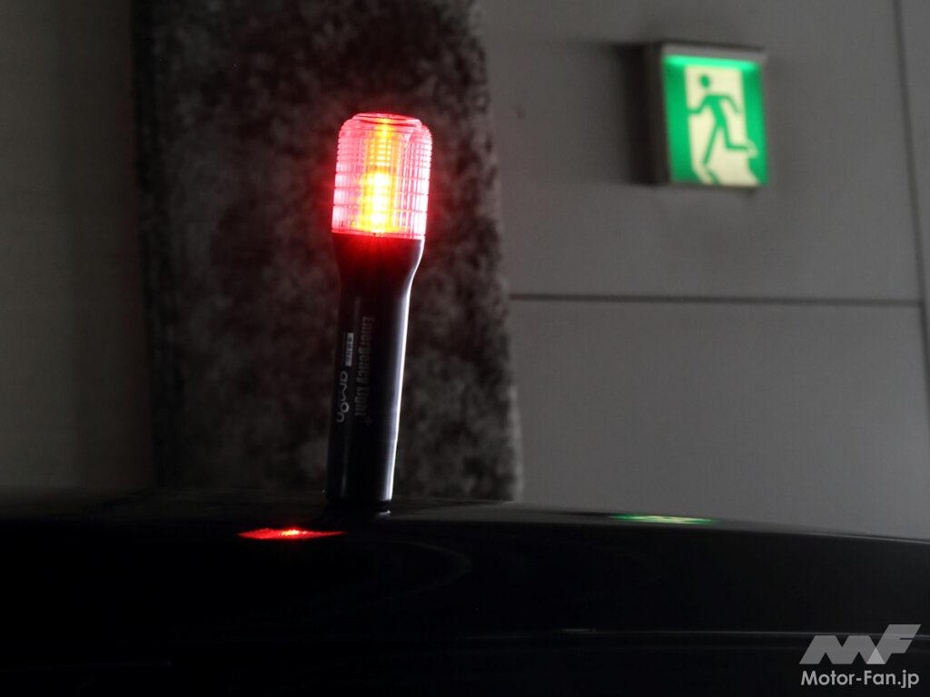 また、停止表示器材とは異なり、車検時に絶対必要な車載常備品が発煙筒だ。使用目的は停止表示器材と同様、後続車に危険を知らせるためのアイテムなのだが、一般道での使用が主なため、確認距離などは短めに設定されている。その代替え品として今注目を集めているのがLEDタイプの『非常信号灯』だ。