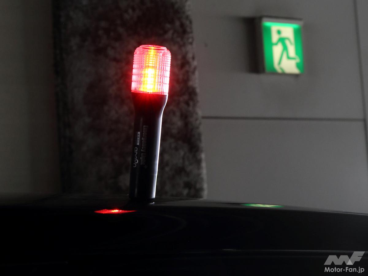 また、停止表示器材とは異なり、車検時に絶対必要な車載常備品が発煙筒だ。使用目的は停止表示器材と同様、後続車に危険を知らせるためのアイテムなのだが、一般道での使用が主なため、確認距離などは短めに設定されている。その代替え品として今注目を集めているのがLEDタイプの『非常信号灯』だ。