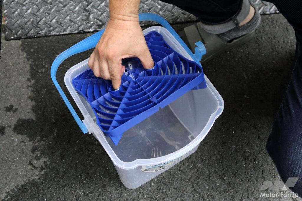 また、バケツの底へのセットや取り出しに便利な取っ手穴がふたつ、中央部分に設けられているほか、水の中でも浮かびづらく、がたつきの少ない重量設計、さらに洗車用品を収納する際にもスポンジやブラシに砂が再付着を防止するなど、非常に合理的に設計されているのだ。砂地獄というネーミングは少し恐ろしく感じてしまうが、クルマにとってはすごくやさしいアイテムなのである。