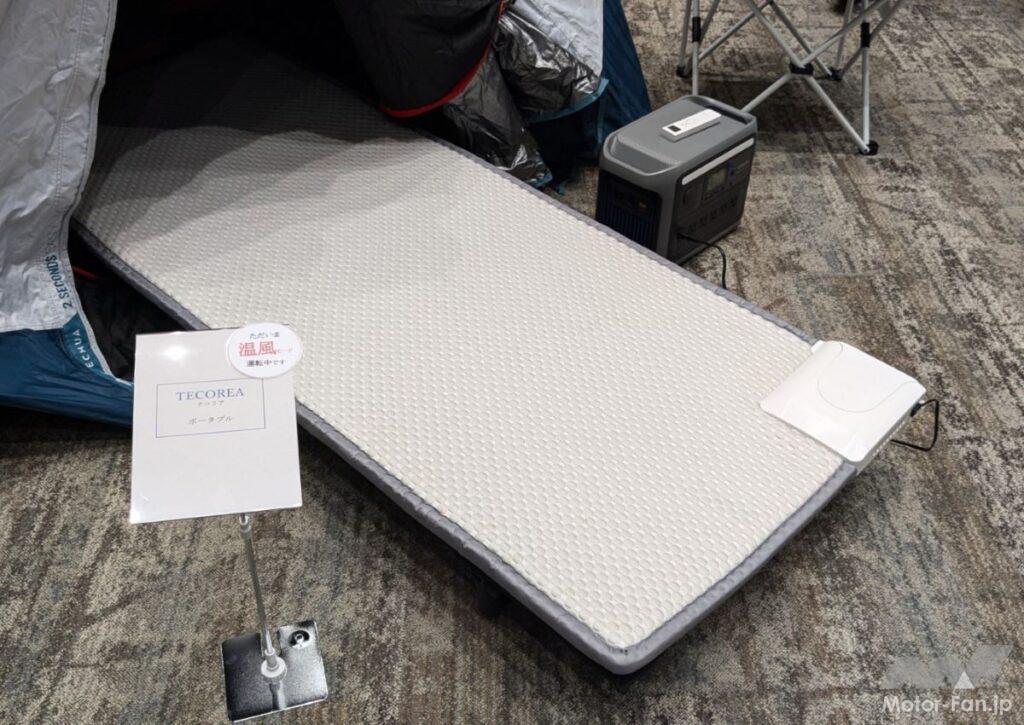 テコリアは、厚さの異なる家庭用のマットレスを中心に展開していたが、年内に新製品を5商品追加。その中には気軽に持ち運びができる製品『TECORIAポータブル(予価:13万2000円/税込)』もある。高機能はそのままに軽く、簡単に収納可能なので車中泊やキャンプ等でも使える。これさえあれば、車内での睡眠の質が確実に向上することは間違いない。