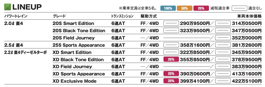 WLTCモード燃費 17.4 ㎞/ℓ※「XD」系のFF車