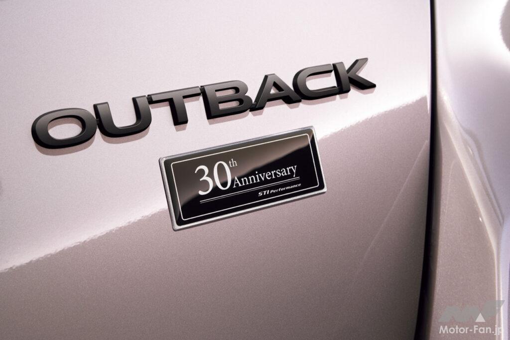 特別仕様車「30th Anniversary」は、1994年に「アウトバック(※)」が誕生して以来、30年の集大成として、どこまでも走り続けられるような安心感と快適性、荷物を効率的に積める積載性、質感の高い内装といった上質さのなかに、スバルがこれまで磨き続けてきたスポーティな走行性能を織り込んだ30周年という節目を記念モデルだ。