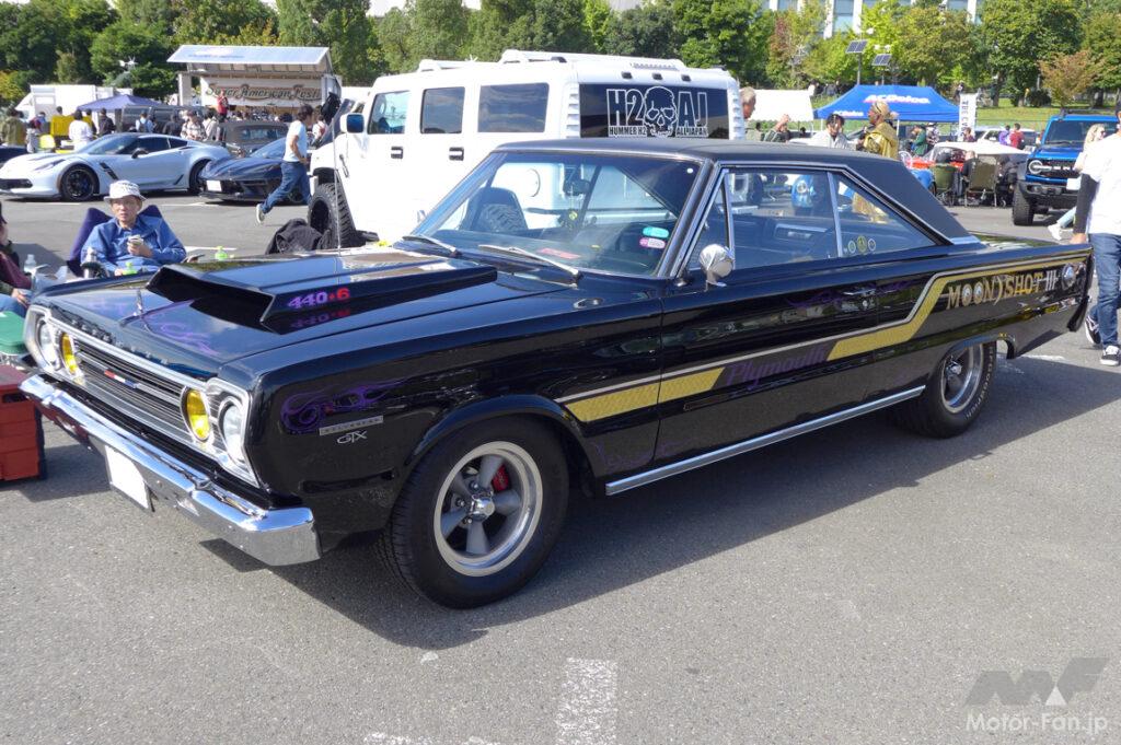 実際、エントリーしたマシンのバリエーションは豊富だ。会場に並んだマッスルカーは、アメ車イベントでは定番の往年のフォード・マスタングやシボレー・コルベット、カマロなどの人気車種はもちろんのこと、1967年型シボレー・ノヴァ・スポーツクーペSS、1970年型フォード・トリノGT、1968年型ダッジ・チャージャーR/Tなどマニアックなクルマの姿も見える。おおっ、あそこにあるは1967年型プリマスGTXじゃないか! あっちには元祖マッスルカーの1966年型ポンティアックGTOの姿もあるゾ!