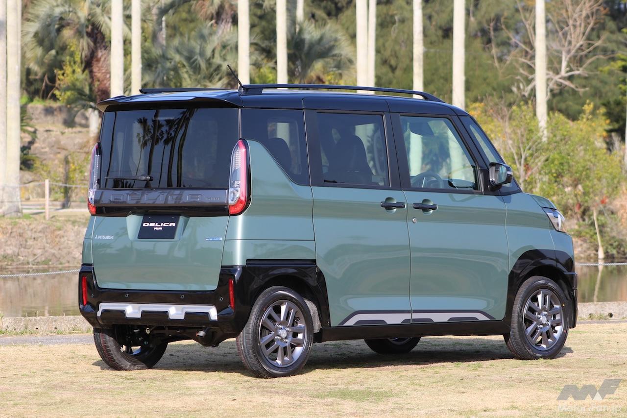 三菱デリカミニは、主にシニア男性からの支持が多く、女性からは顔が“こわもて”と受け取られることがおおかったというeKクロススペースの実質的な後継モデルだ。ただし、単に女性からも受ける顔つきになっただけでなく、日産と三菱のジョイントベンチャーであるNMKVでは異例といえる、三菱専用の足まわりの開発が、4WDモデルに注ぎ込まれたのが特徴だ。2WDの165/55R15タイヤに対して、165/60R15タイヤと専用ショックアブソーバーを履く4WDは、岡崎製作所のクロスカントリー路で入念な走り込みを行ったという。