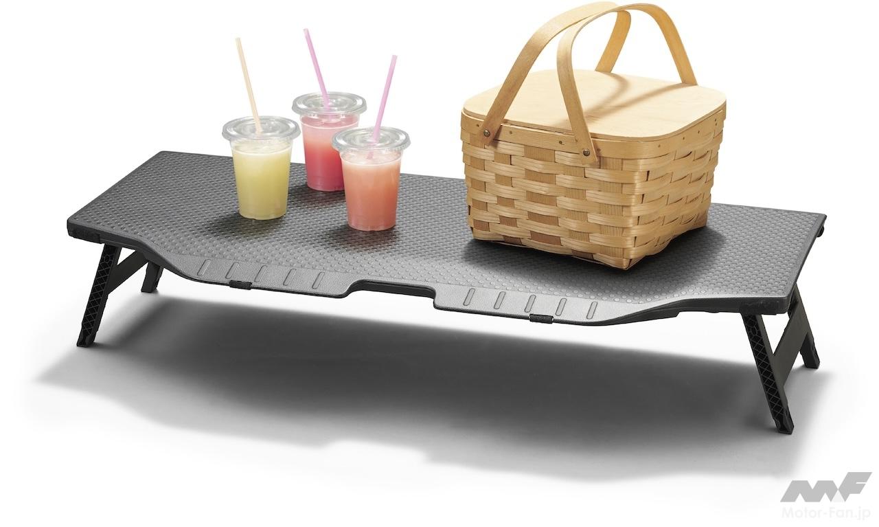同ボードを上段にすれば後席前倒し時にフラットになり、大きな荷物の積載などがしやすくなる。下段にすれば荷室高を稼げるなど、余裕のある荷室高を有効活用。さらに、デッキボードは脱着可能で、アウトドアなどで荷物置き場(直接荷物を地面に置きたくないなどの声に応える)としても使える。